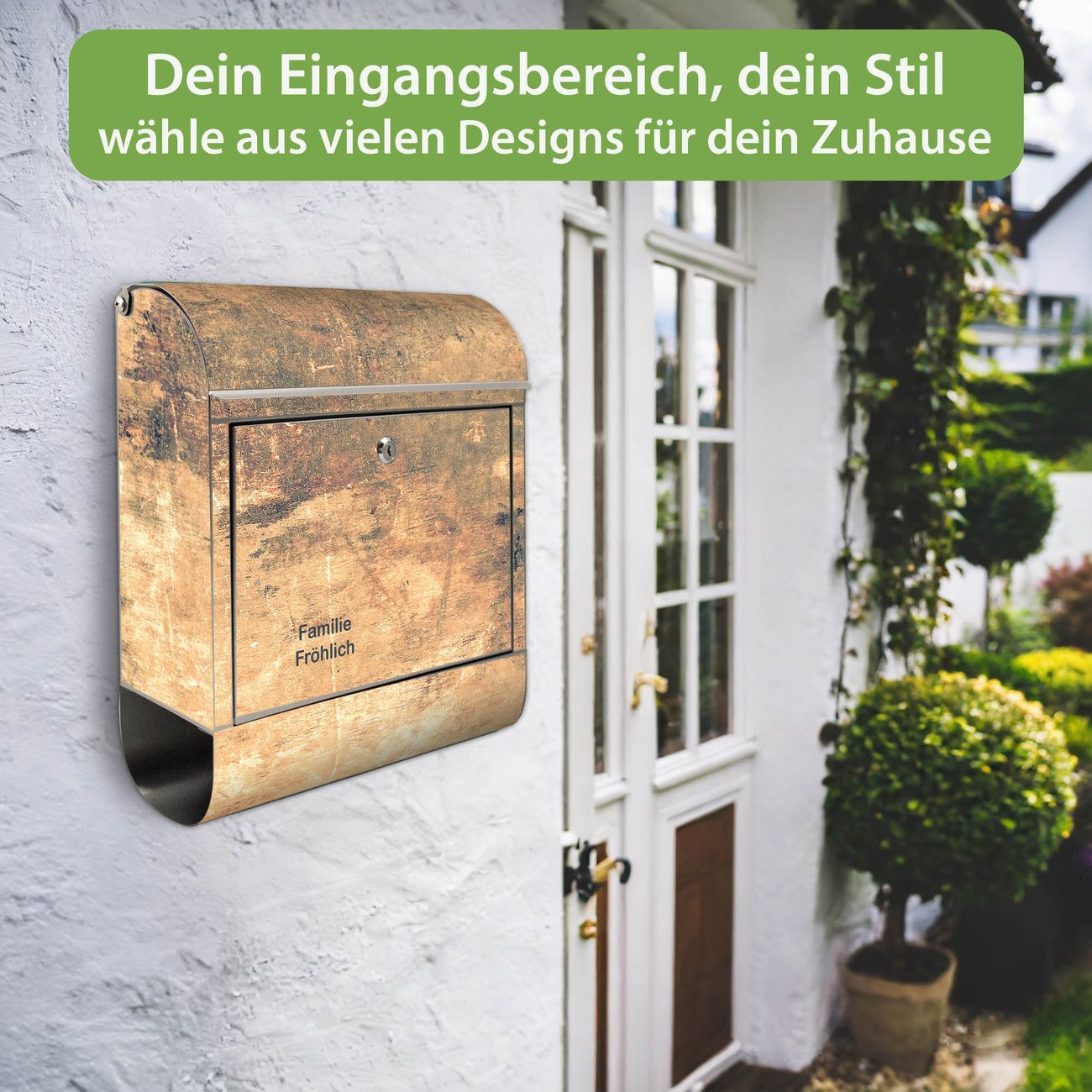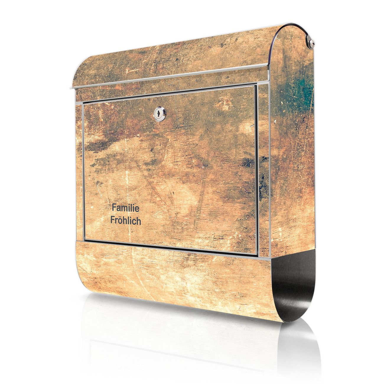 Wandbriefkasten Edelstahl Motiv Verwittertes Holz 2