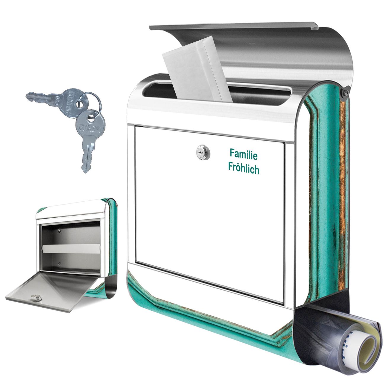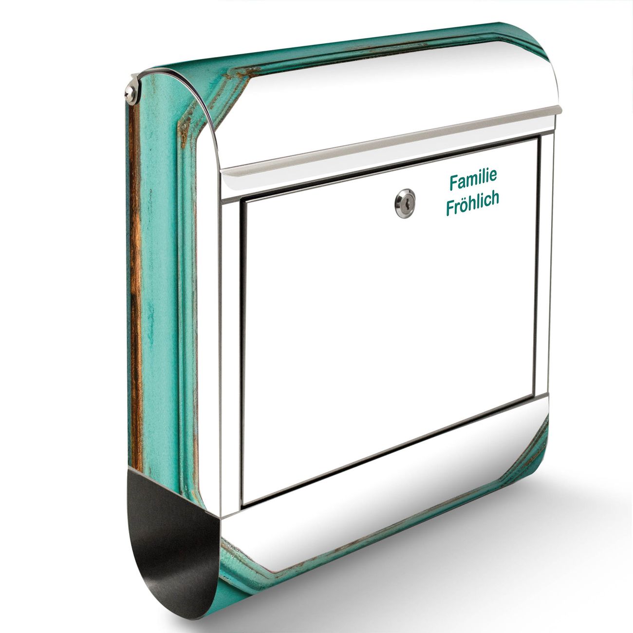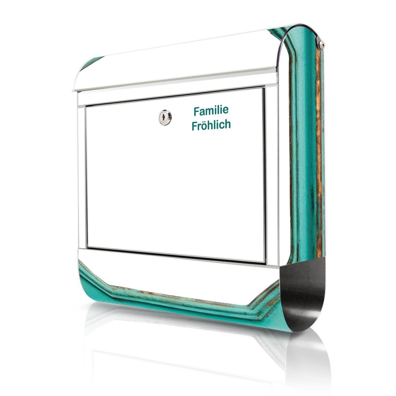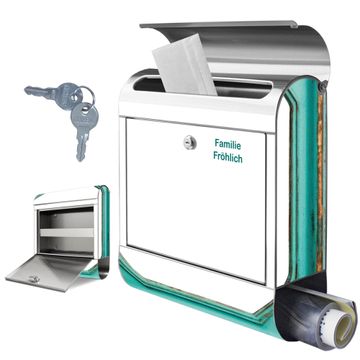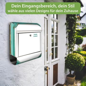 Wandbriefkasten Edelstahl Motiv Vintage Metallrahmen