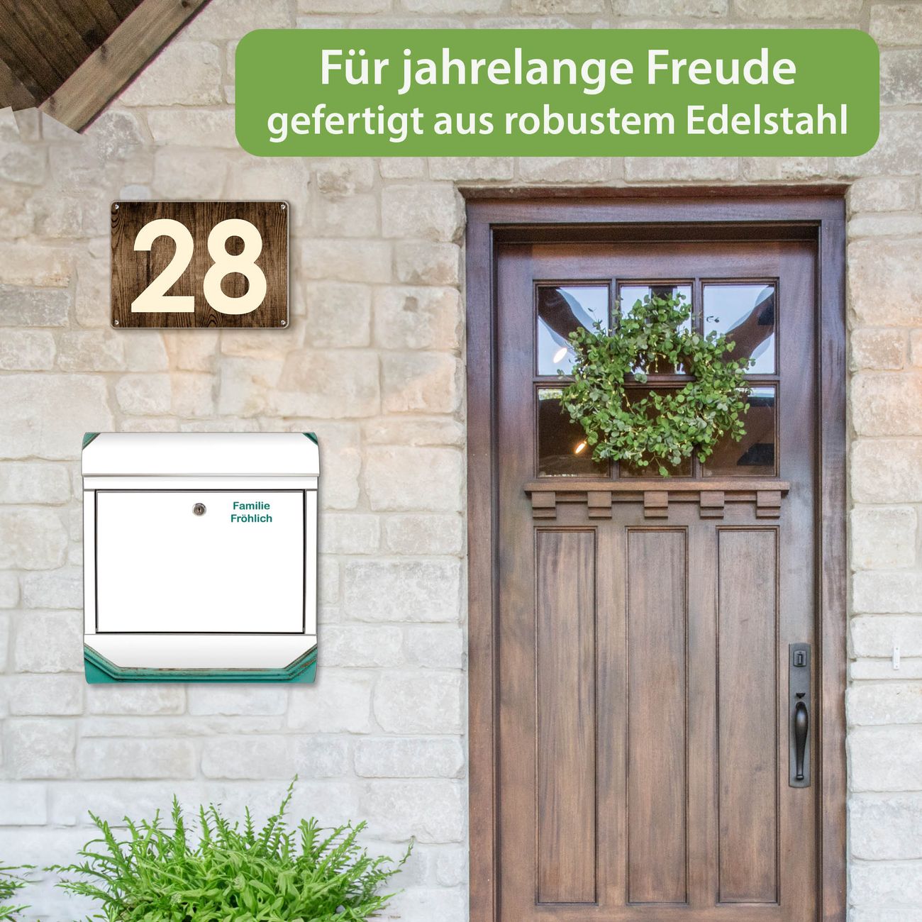 Der Vorschau-Text Familie Fröhlich wird durch Ihren persönlichen Wunschtext ersetzt. Die Schriftart und Farbe bleiben gleich wie in der Vorschau.