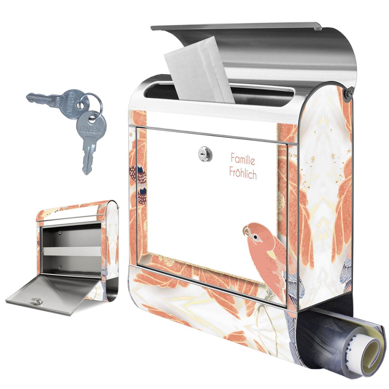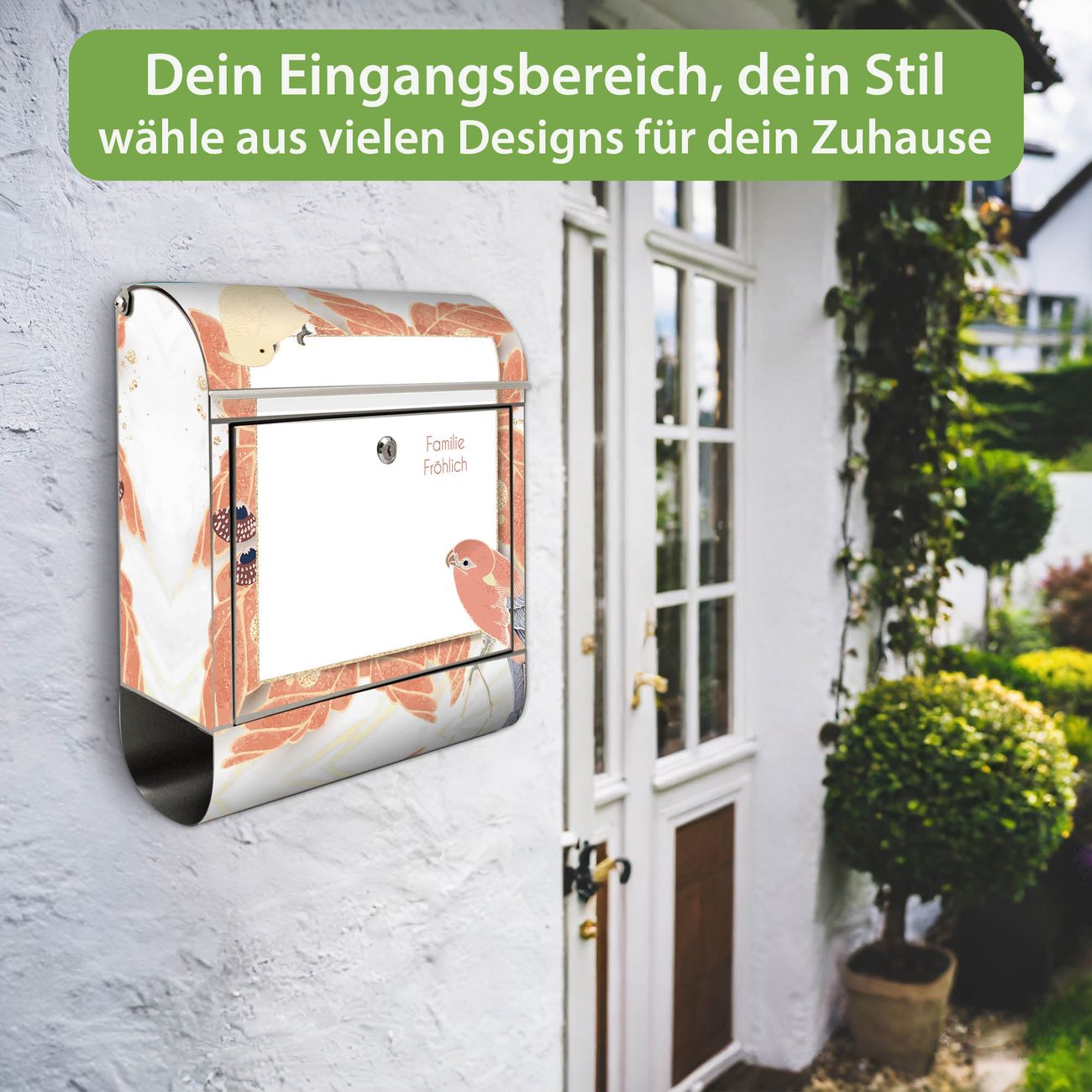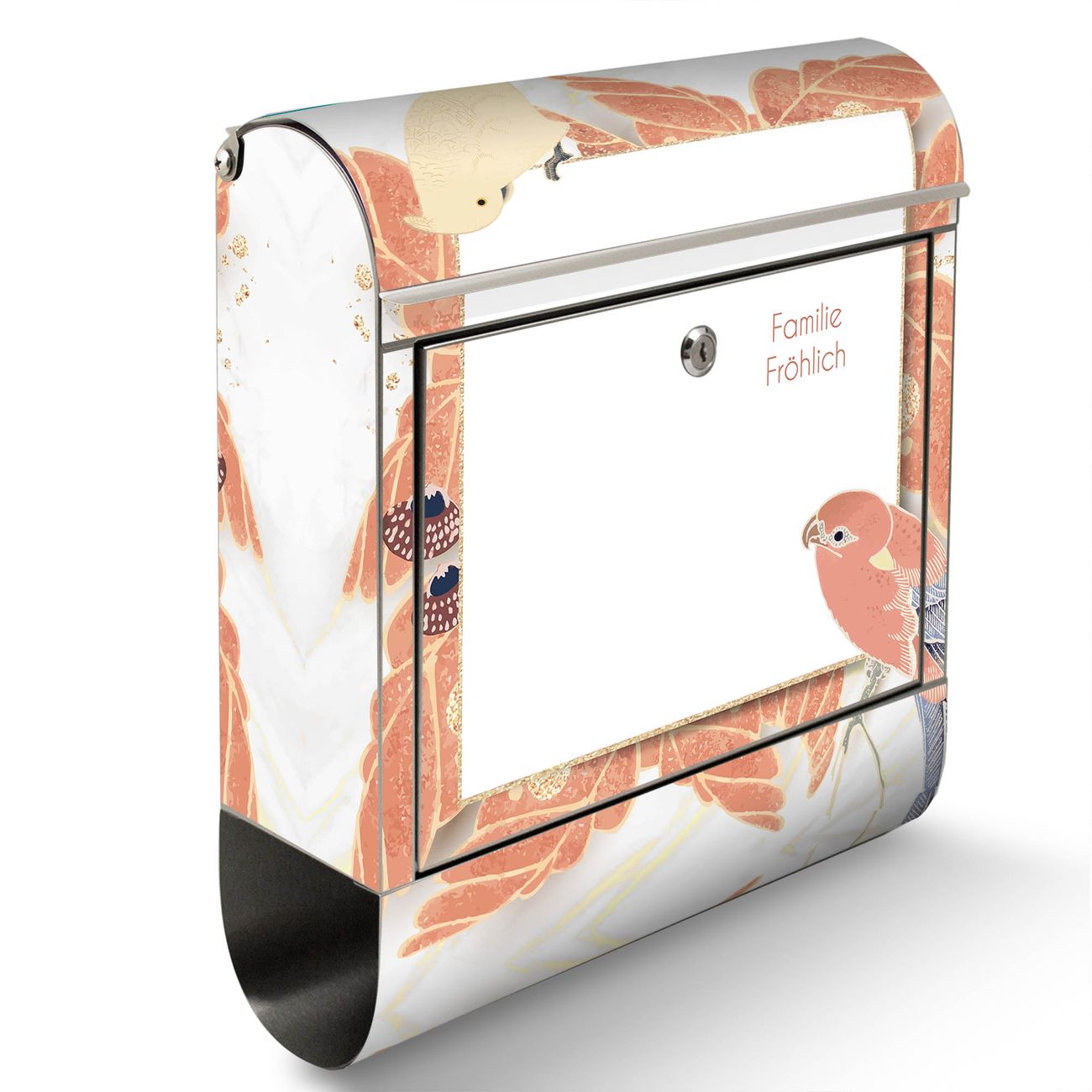 Wandbriefkasten Edelstahl Motiv Vogelrahmen