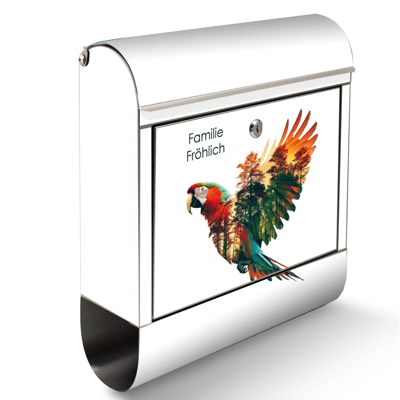 Wandbriefkasten Edelstahl Motiv Wald und Vogel Silhouette