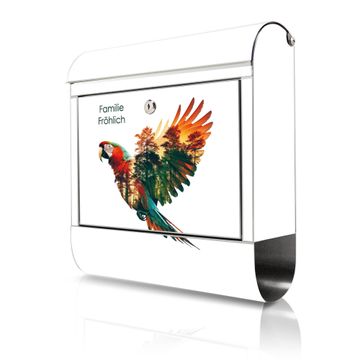 FUNKTION: Der banjado Edelstahl Briefkasten mit Motiv Motiv Wald und Vogel Silhouette bietet Ihnen mit seinem Fassungsvermögen genügend Platz auch für große A4 Sendungen. Das integrierte Zeitungsfach eignet sich hervorragend um unkompliziert die Tageszeitung zu fassen. Auf Wunsch können Sie bei uns den passenden Ständer kaufen und so aus dem Wandbriefkasten einen Standbriefkasten machen. DESIGN: Der Motivbriefkasten hat ein sehr ansprechendes und ausgefallenes Design, damit entlocken Sie Ihren Nachbarn und dem Postboten ein Lächeln. Heben Sie Sich ab von der tristen grauen Masse ohne auf Funktionalität zu verzichten. DETAILS: Der Design Briefkasten mit Motiv Motiv Wald und Vogel Silhouette besteht aus hochwertigem 18/0 Edelstahl. Das Motiv besteht aus einer wetter- und UV-resistenten Folie, die mit einem Schutzlaminat überzogen ist. Der Briefkasten wird mit Montagematerial und zwei Schlüsseln geliefert. NUTZEN: Sie können diesen Briefkasten sowohl als Wandbriefkasten montieren oder einen passenden Ständer auswählen und als Standbriefkasten einbetonieren. Die Größe bietet genügend Platz für Sendungen aller Art, das hochwertige Edelstahl ist rostfrei und die Motivfolie absolut wetterfest. SCHUTZ: Um Ihre Post optimal vor Witterungseinflüssen wie Starkregen zu schützen, empfehlen wir, den Briefkasten geschützt anzubringen. BANJADO: Ihr Briefkasten wird in Sachsen in einer kleinen Manufaktur von Hand veredelt. Die Motivfolie ist lösungsmittelfrei und schutzlaminiert, dies sorgt für einen langen Halt. Wir legen großen Wert auf die Verbindung von Funktionalität und Design. Sie erhalten Handarbeit aus Sachsen.