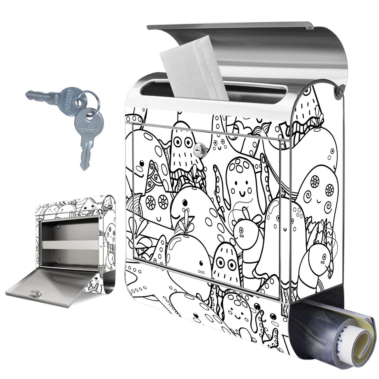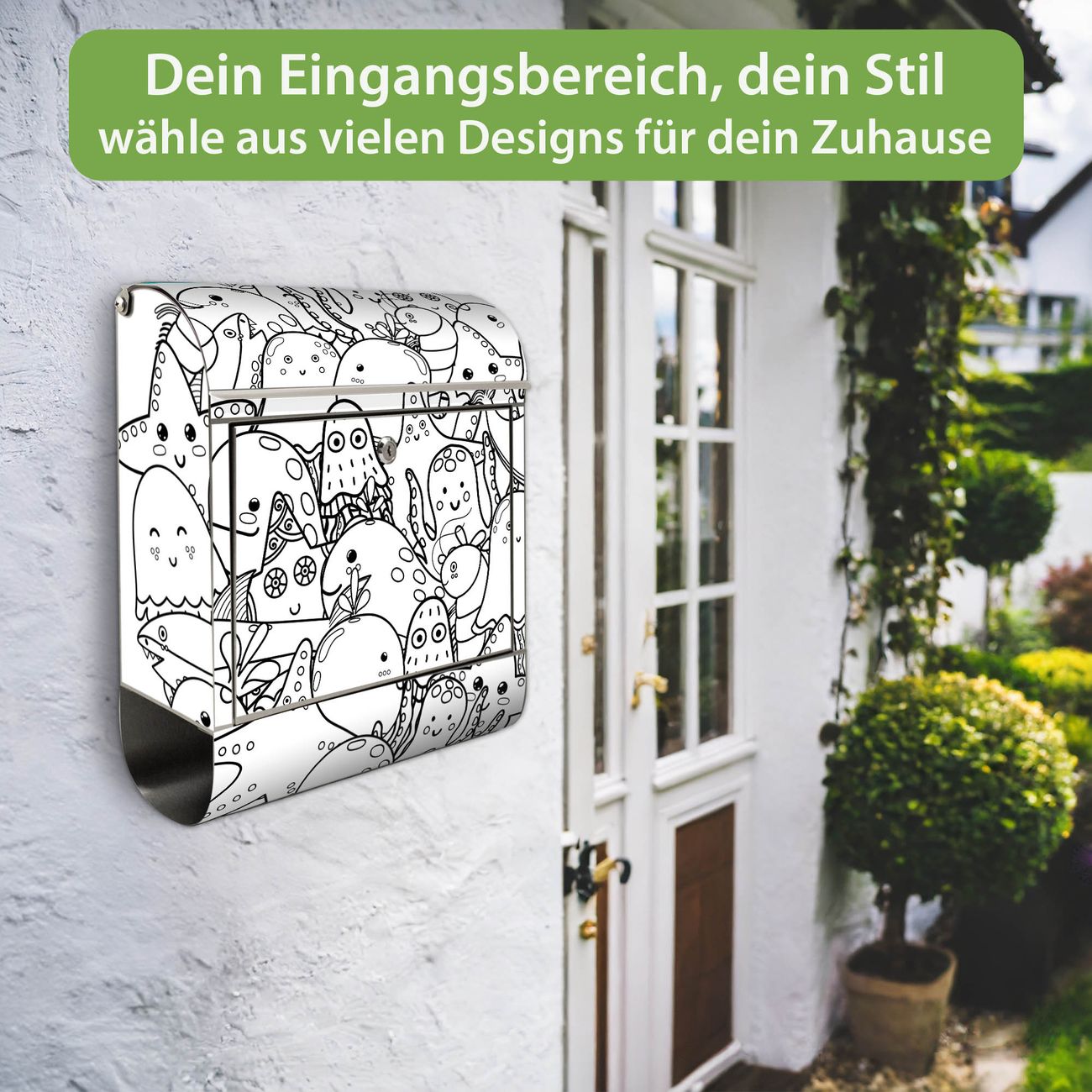 Wandbriefkasten Edelstahl Motiv Wassermonsterchen 2