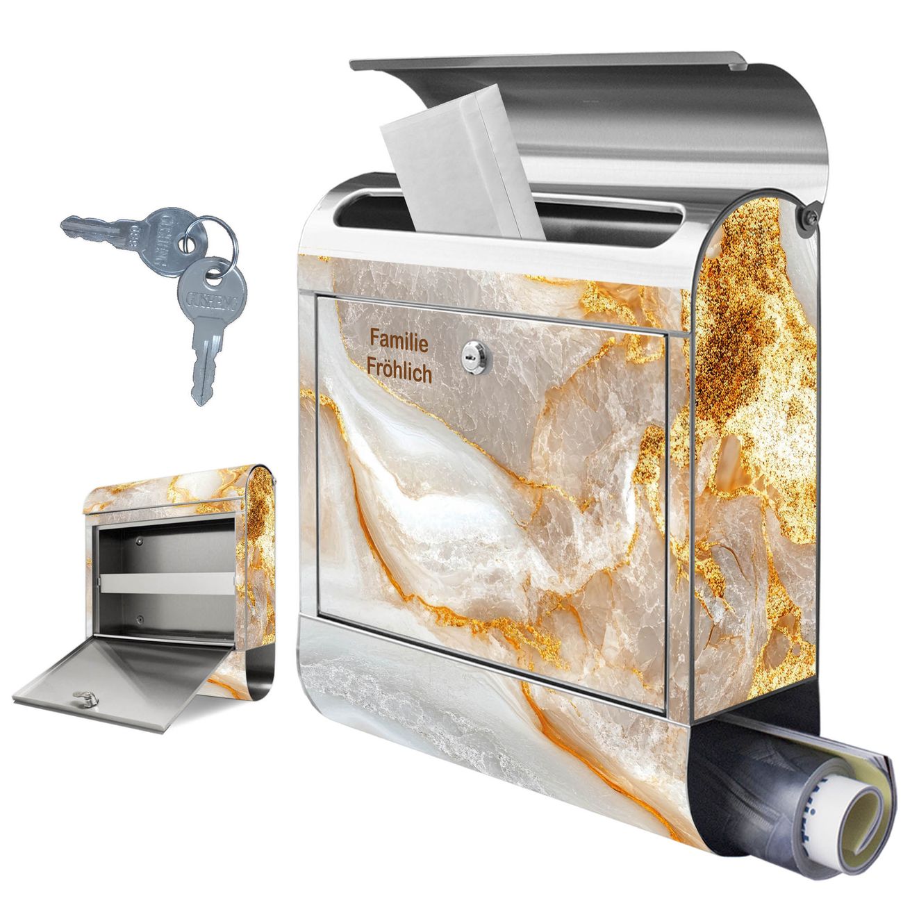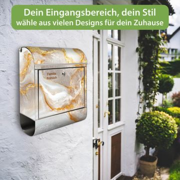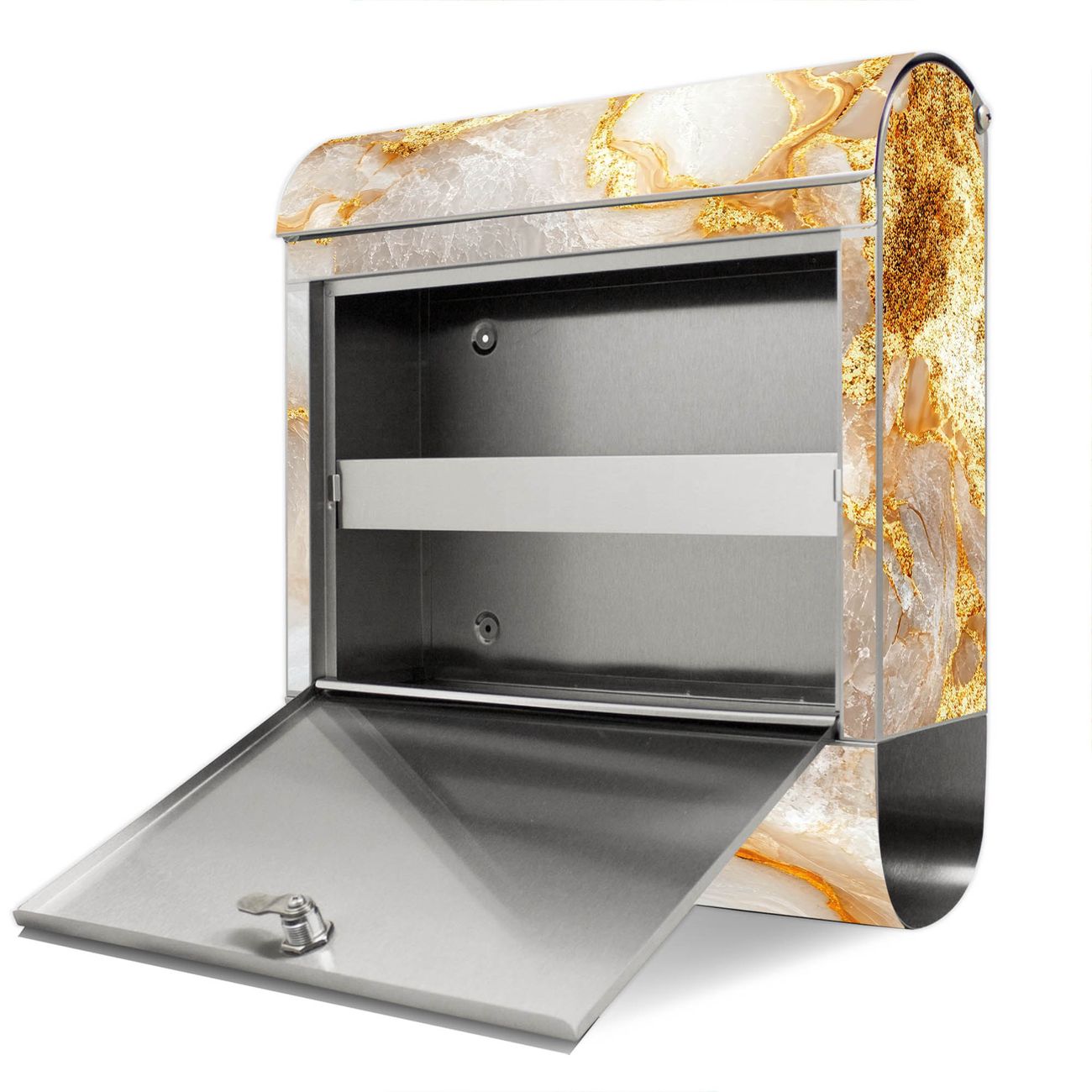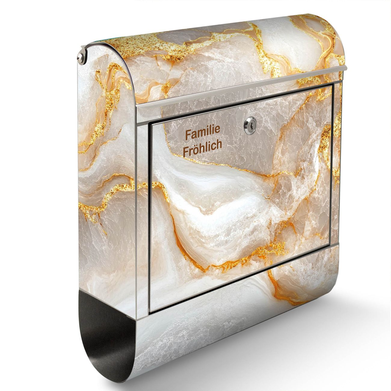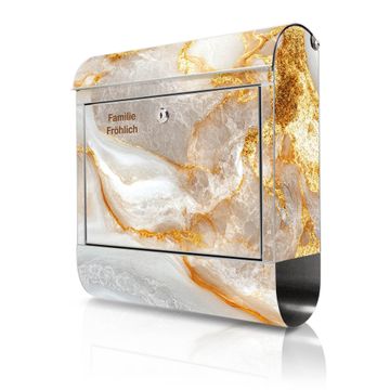 Wandbriefkasten Edelstahl Motiv Weißer Marmor mit Gold 1