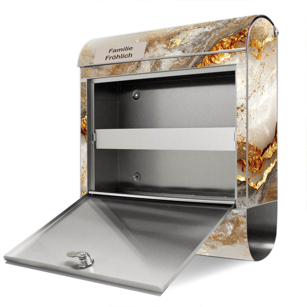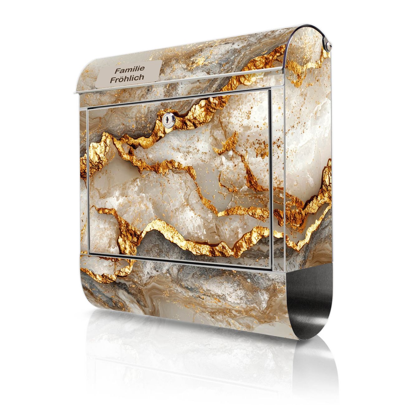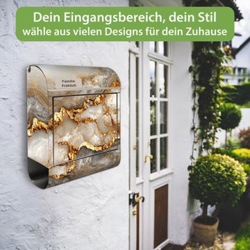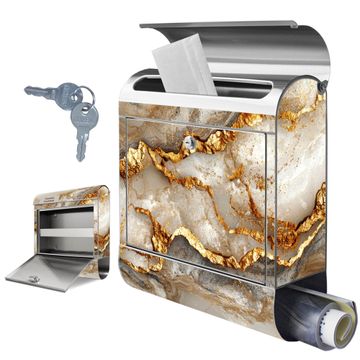 Wandbriefkasten Edelstahl Motiv Weißer Marmor mit Gold 2