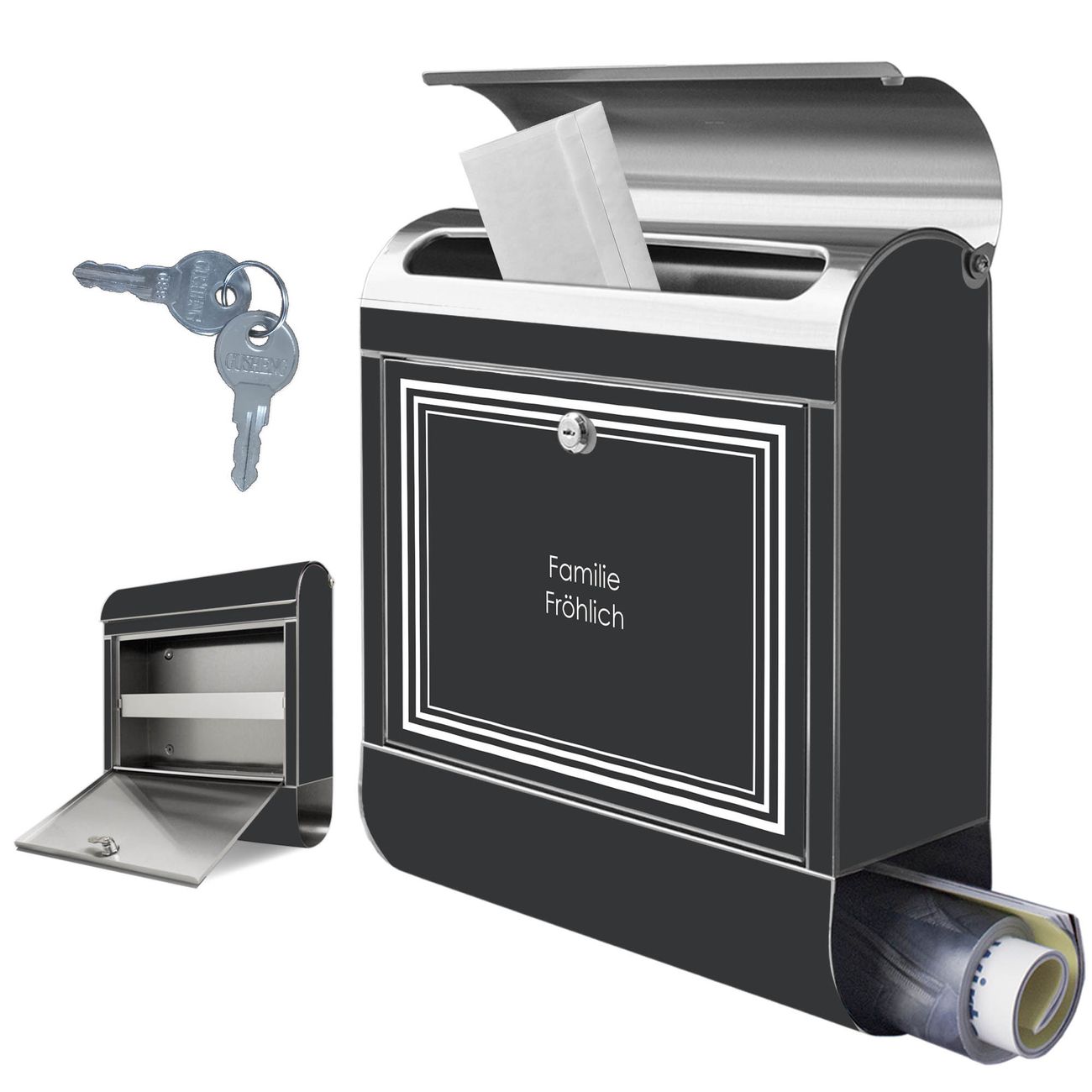 Wandbriefkasten Edelstahl Motiv Weißer Rahmen 2