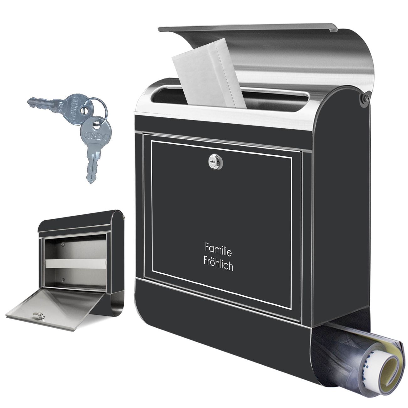 Wandbriefkasten Edelstahl Motiv Weißer Rahmen