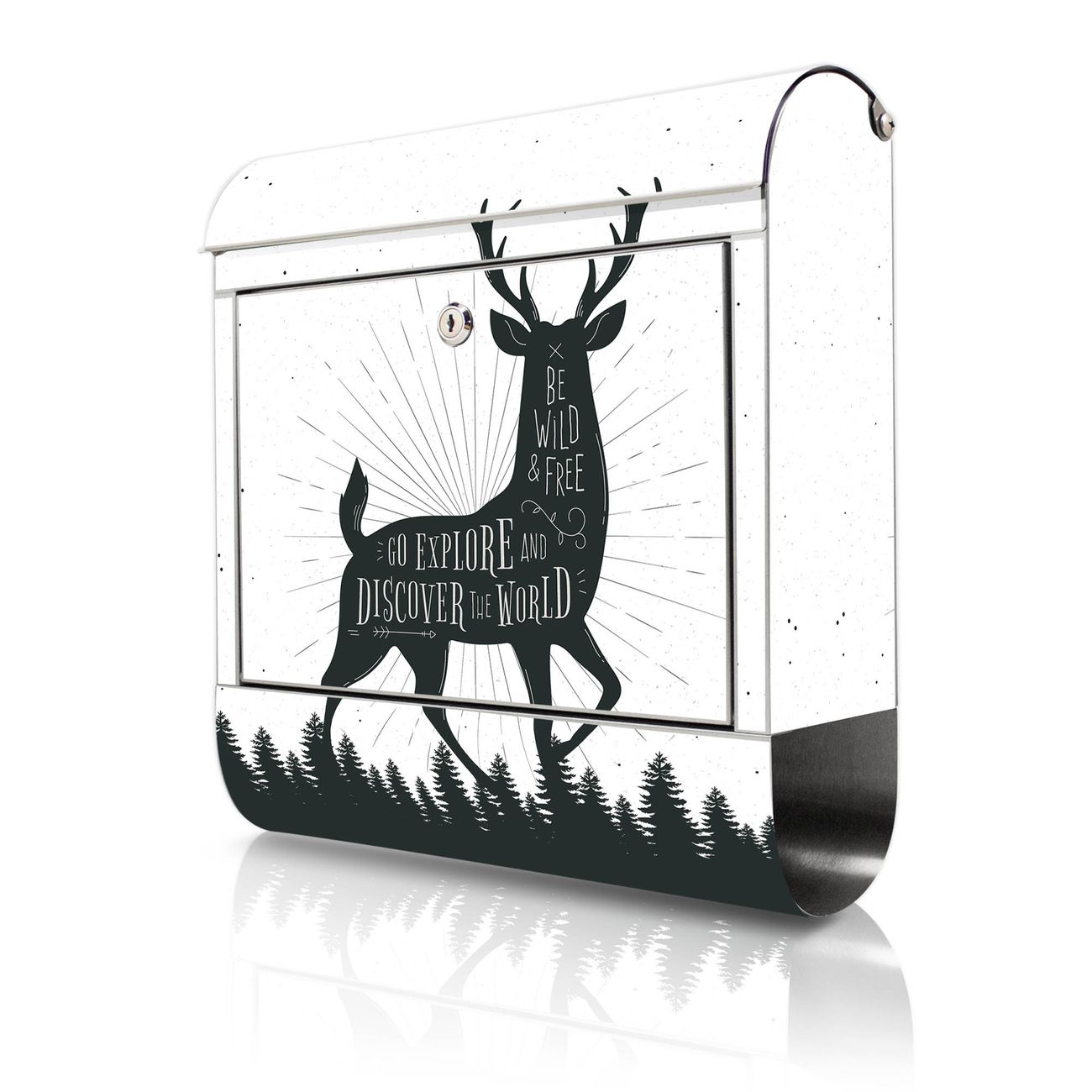 Wandbriefkasten Edelstahl Motiv Wilder Hirsch