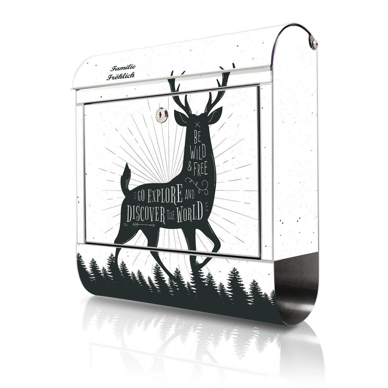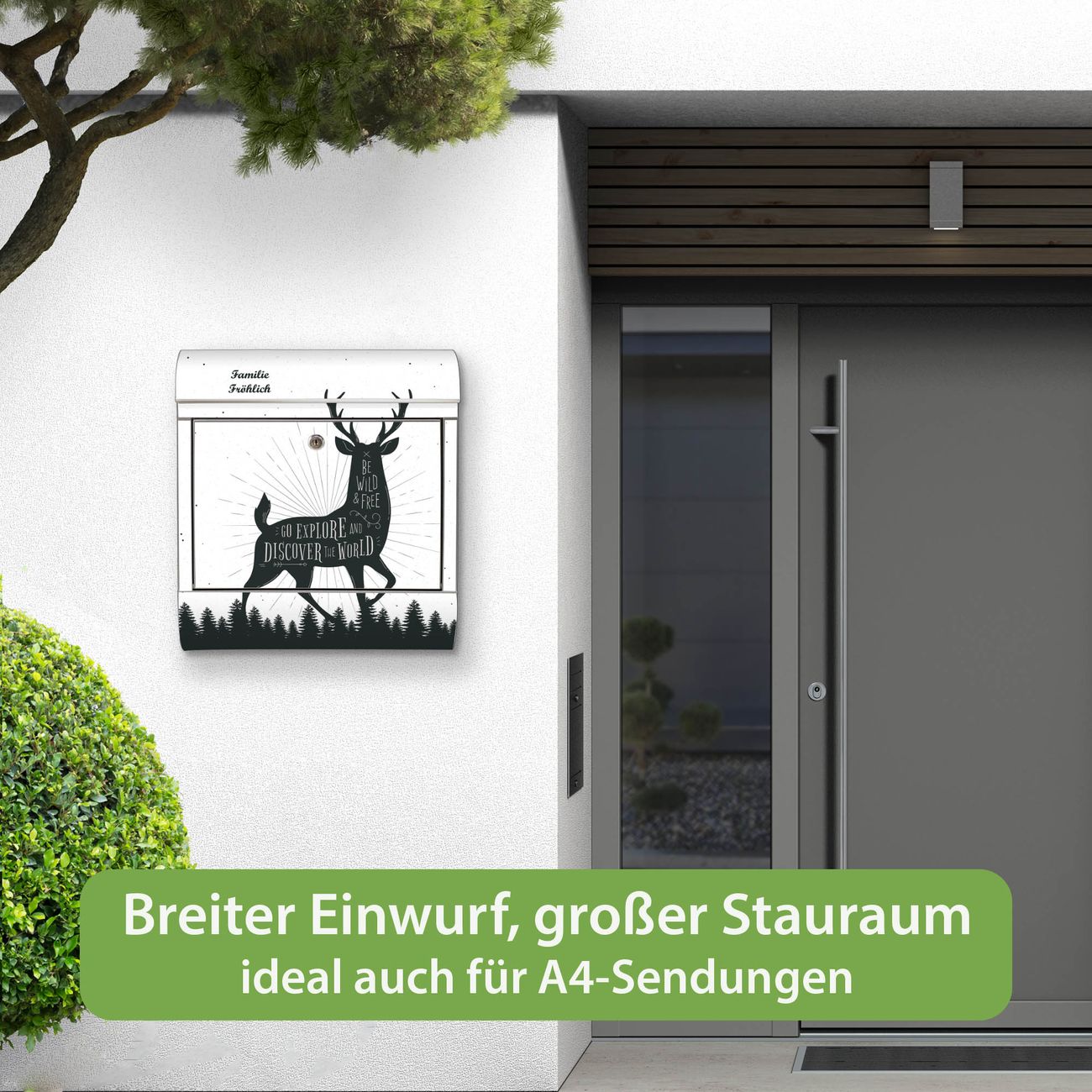 Wandbriefkasten Edelstahl Motiv Wilder Hirsch