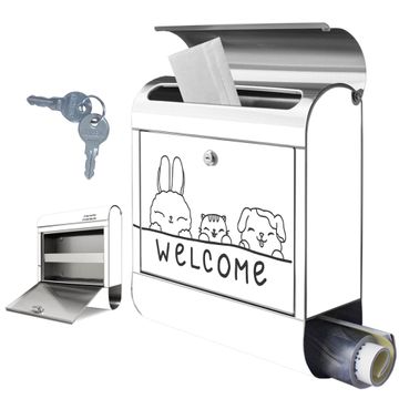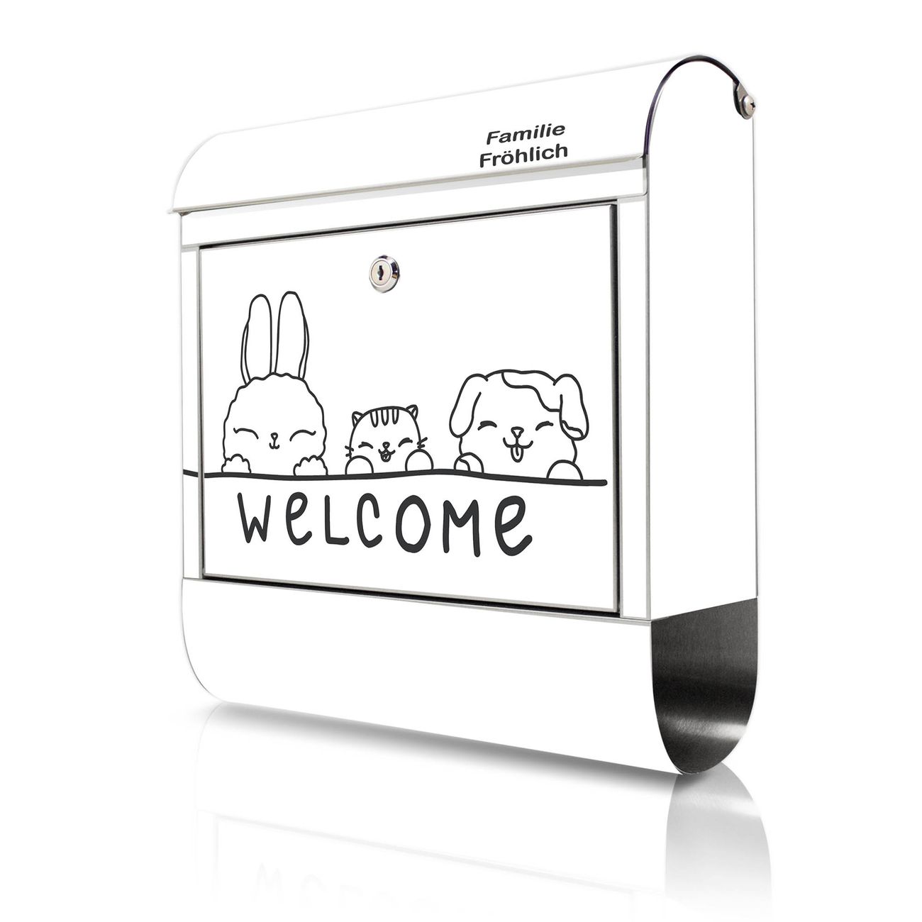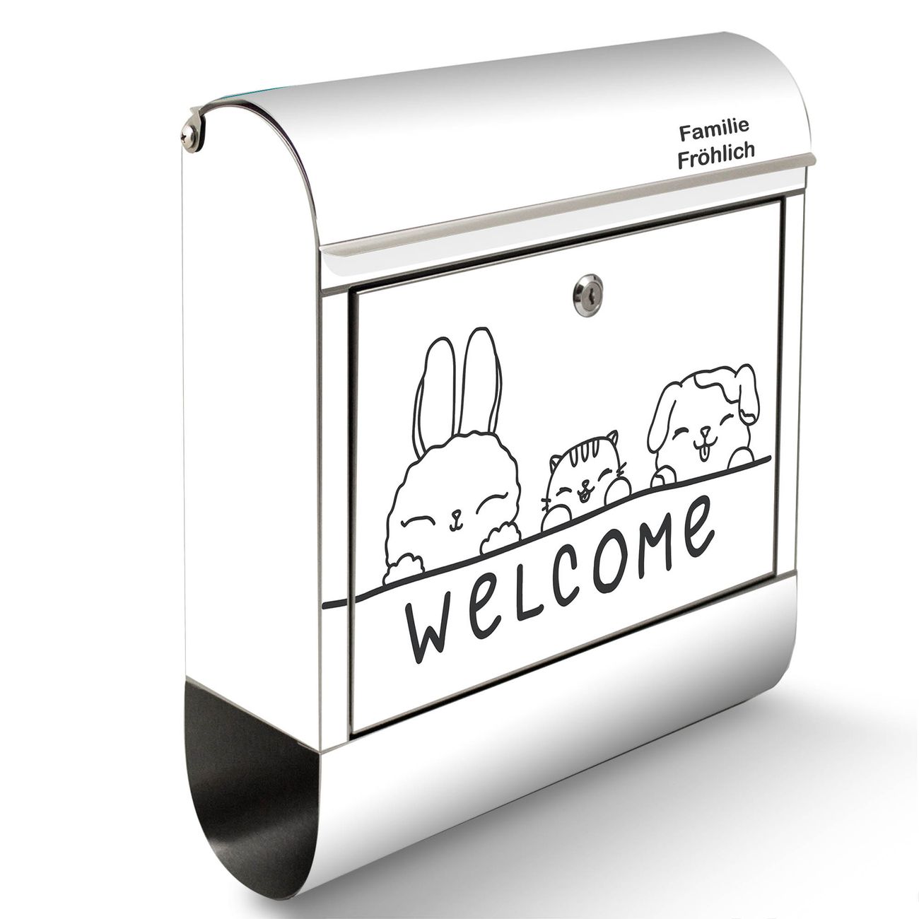 Wandbriefkasten Edelstahl Motiv Willkommensfreunde