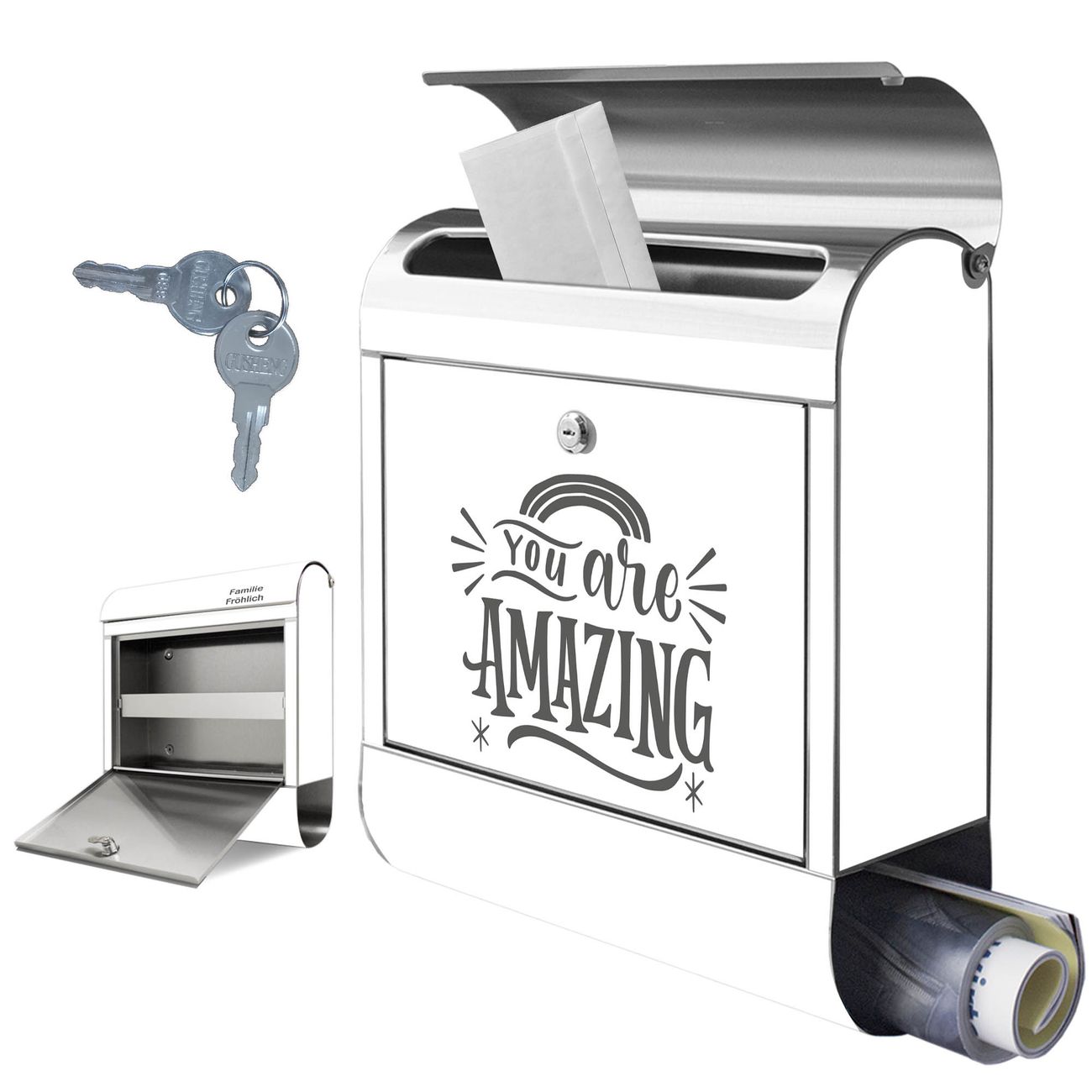 Wandbriefkasten Edelstahl Motiv You are Amazing Spruch