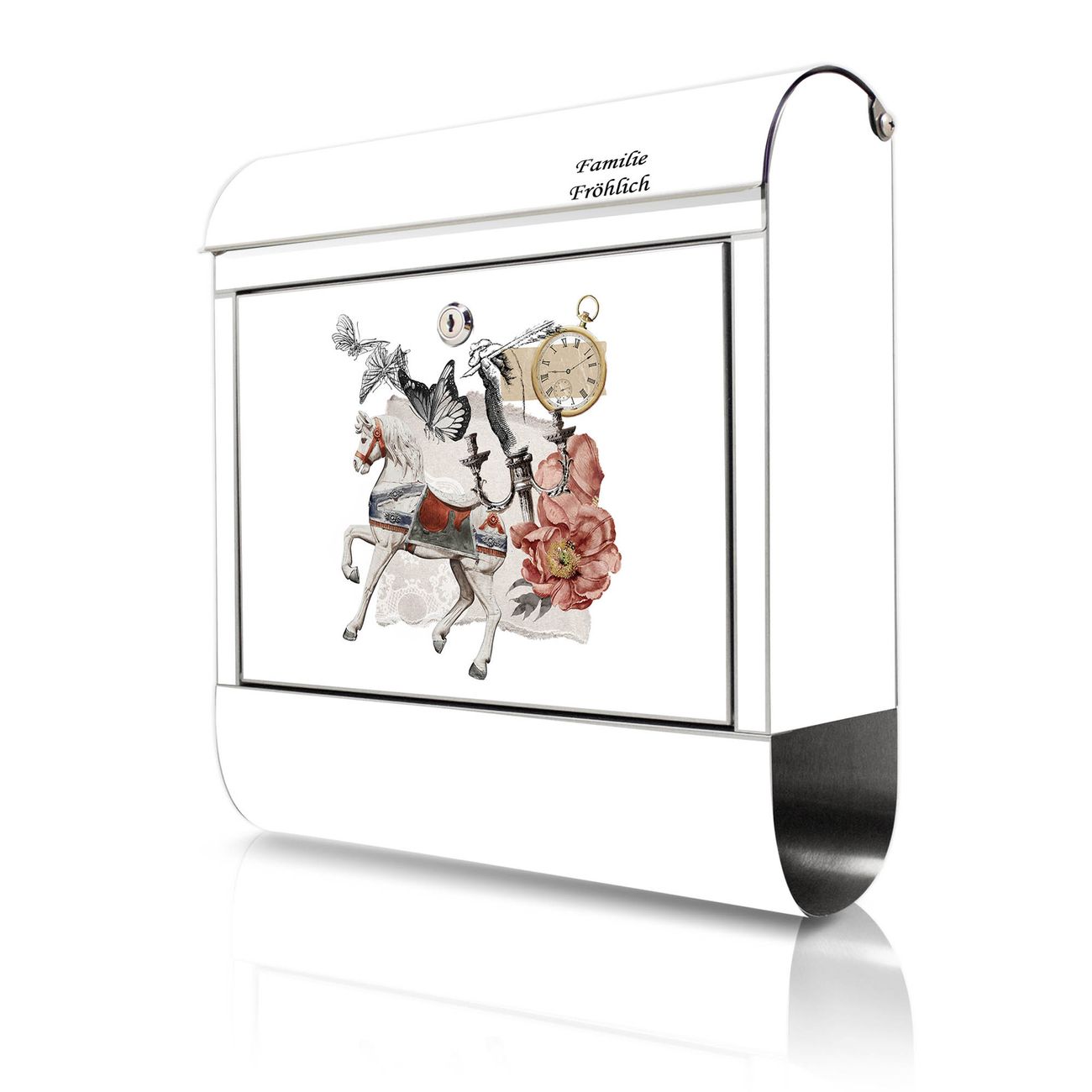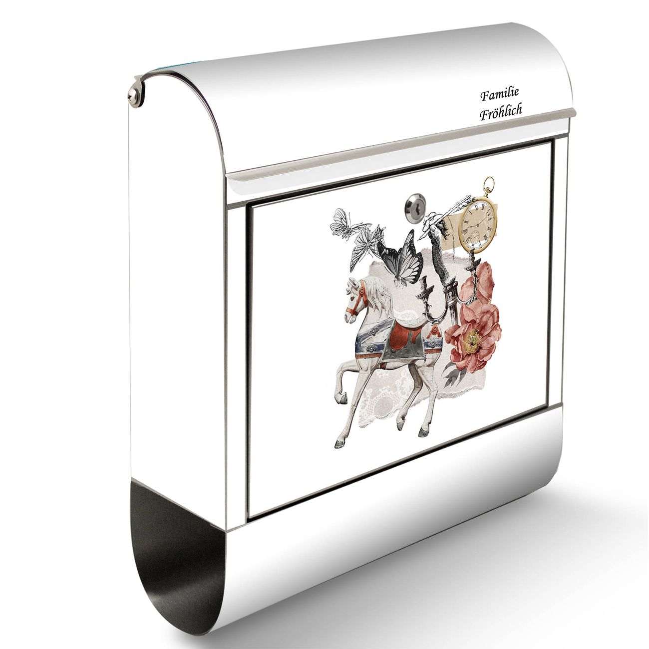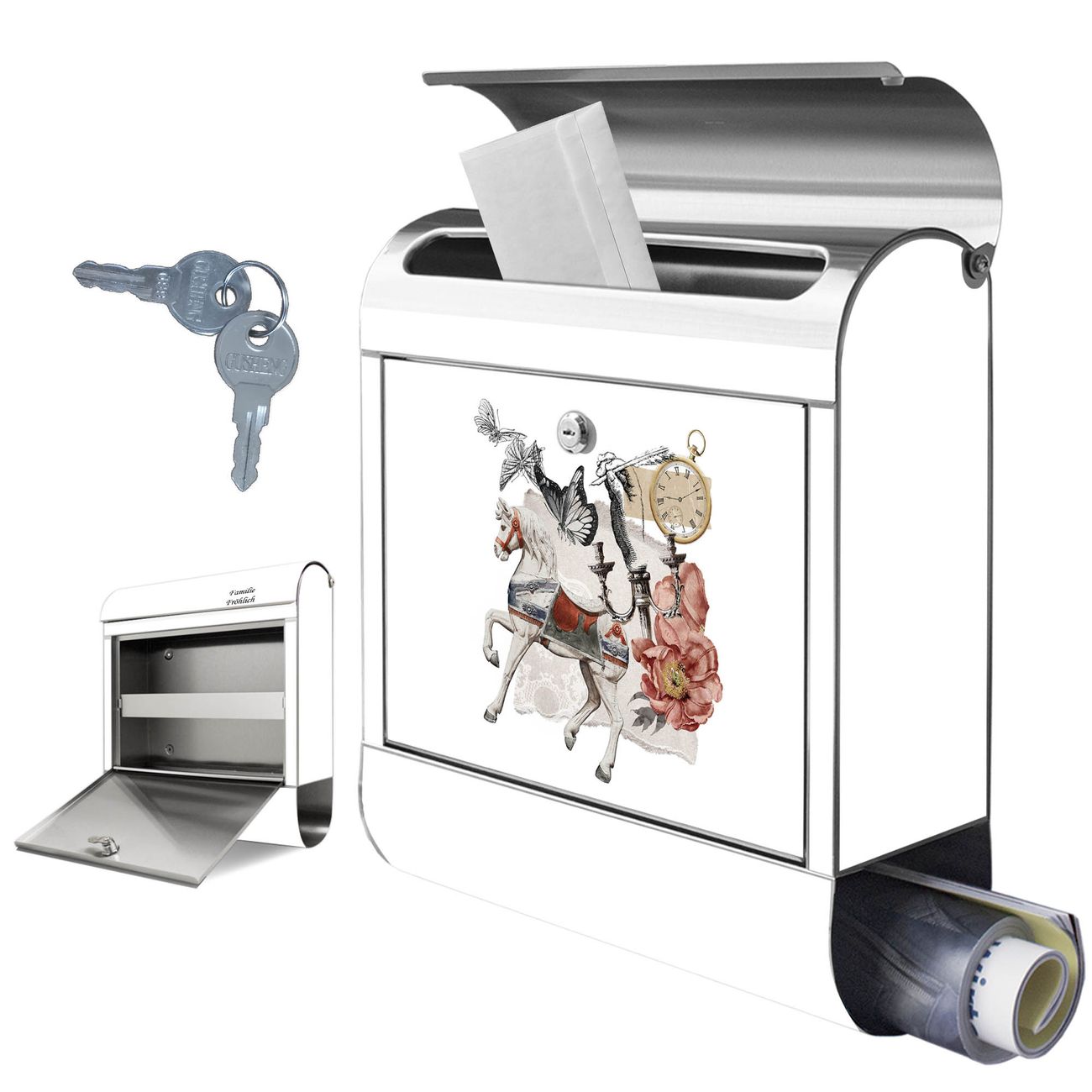 Wandbriefkasten Edelstahl Motiv Zeitreise-Kollage Vintage