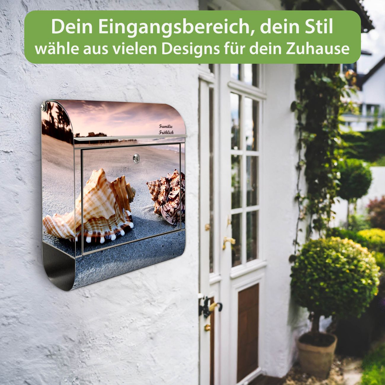 Wandbriefkasten Edelstahl Motiv Muscheln