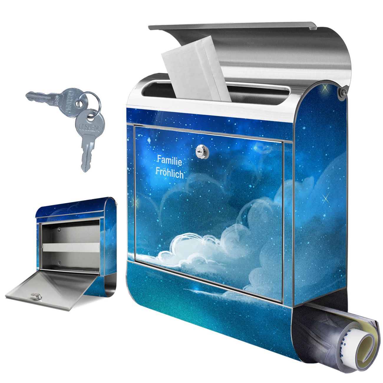 Wandbriefkasten Edelstahl Motiv Nachthimmel 1