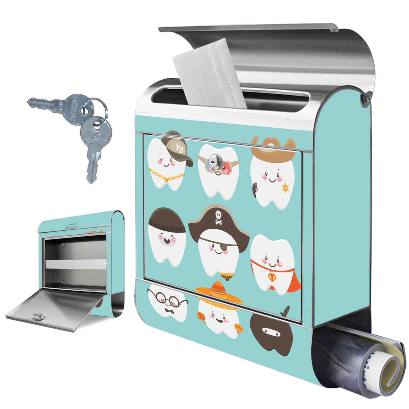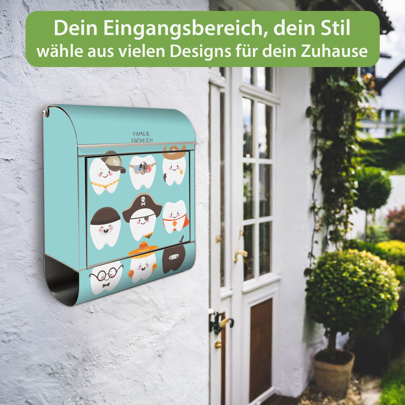 Wandbriefkasten Edelstahl Motiv Neun Zähne