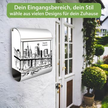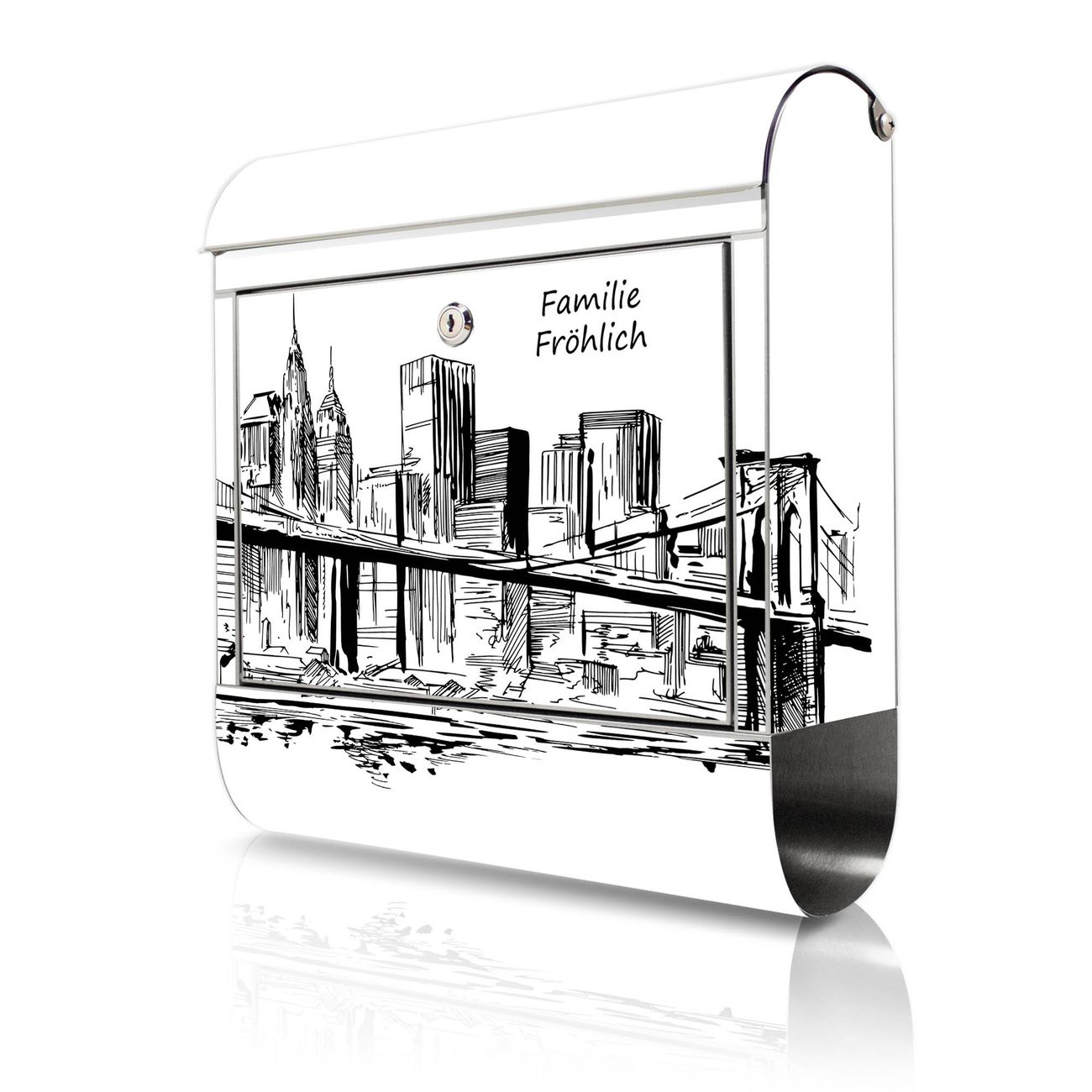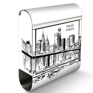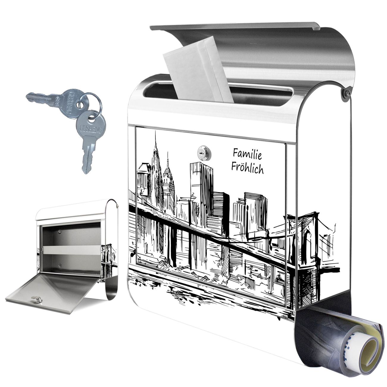 Wandbriefkasten Edelstahl Motiv New York Skizze