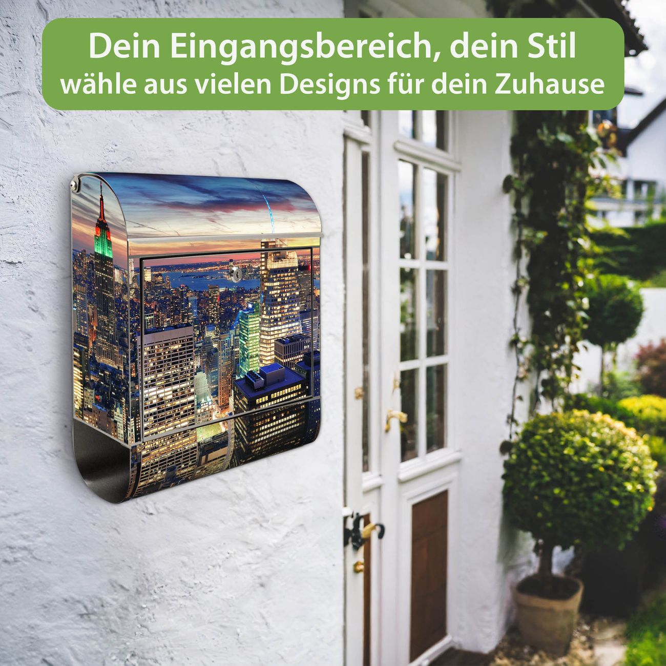 Wandbriefkasten Edelstahl Motiv New York Sunset