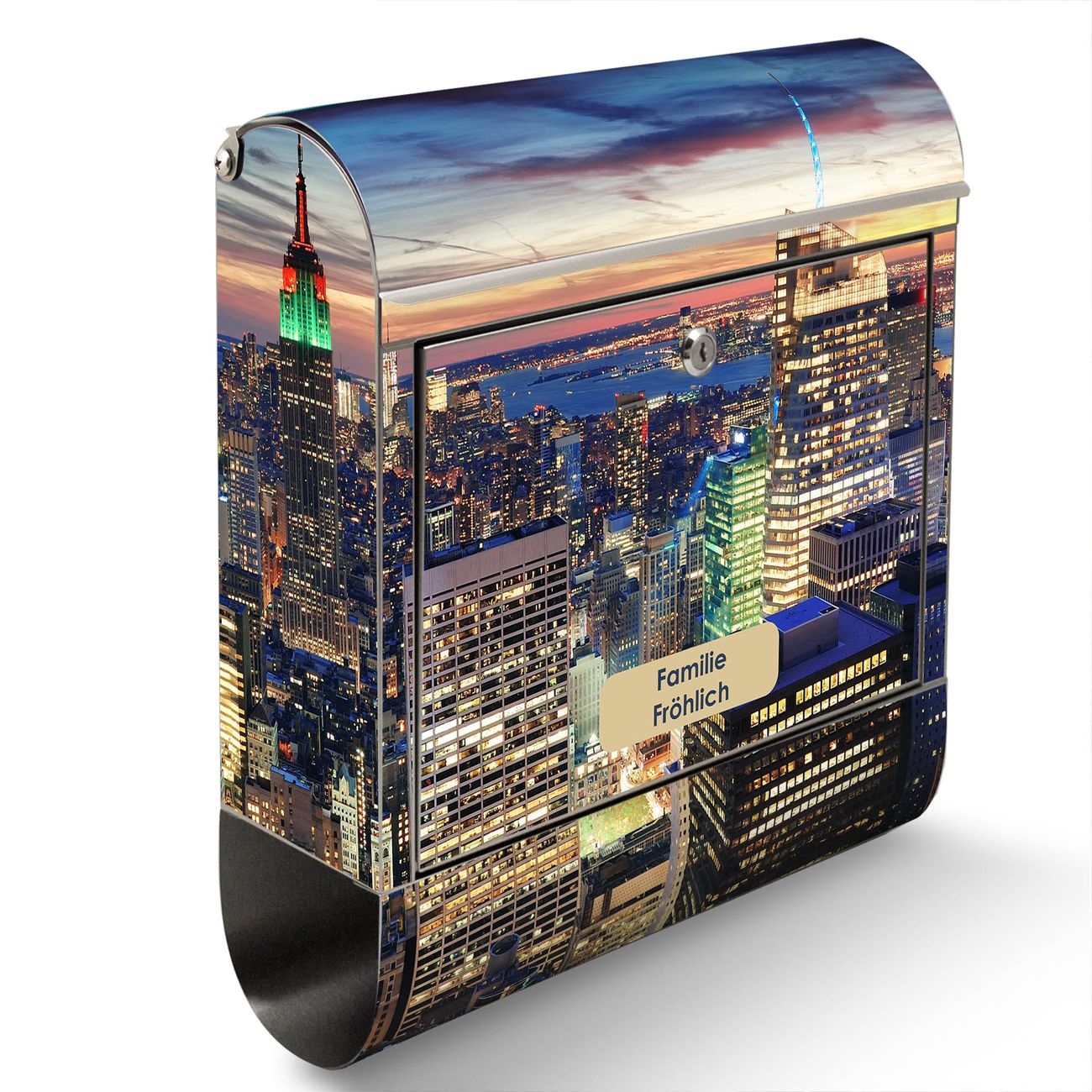 Wandbriefkasten Edelstahl Motiv New York Sunset