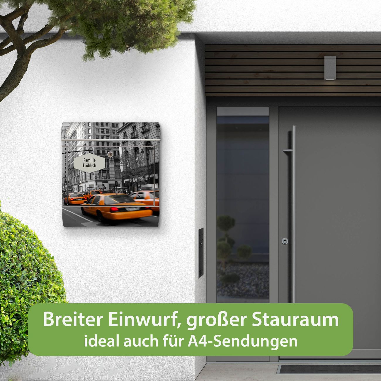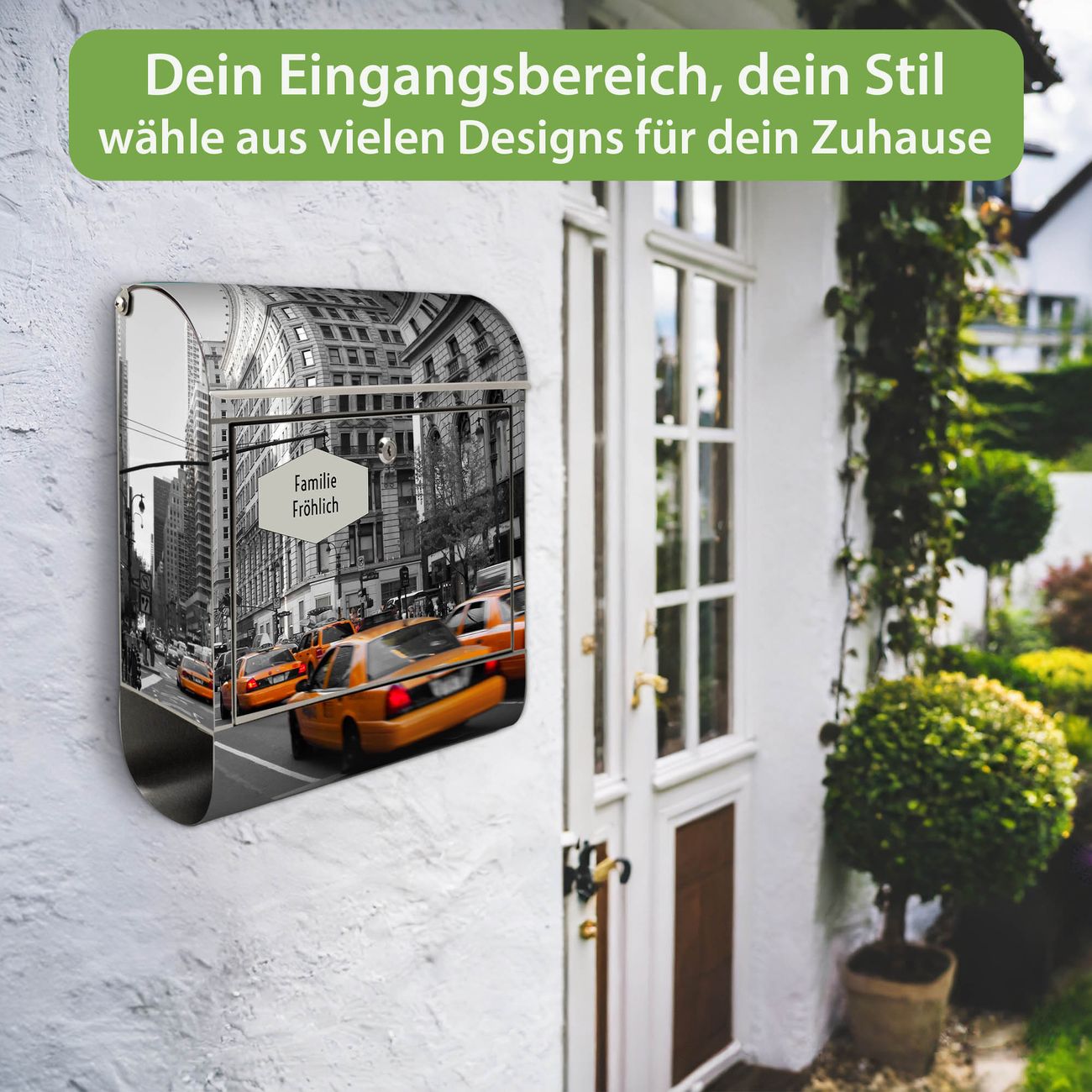 Wandbriefkasten Edelstahl Motiv New York Taxi