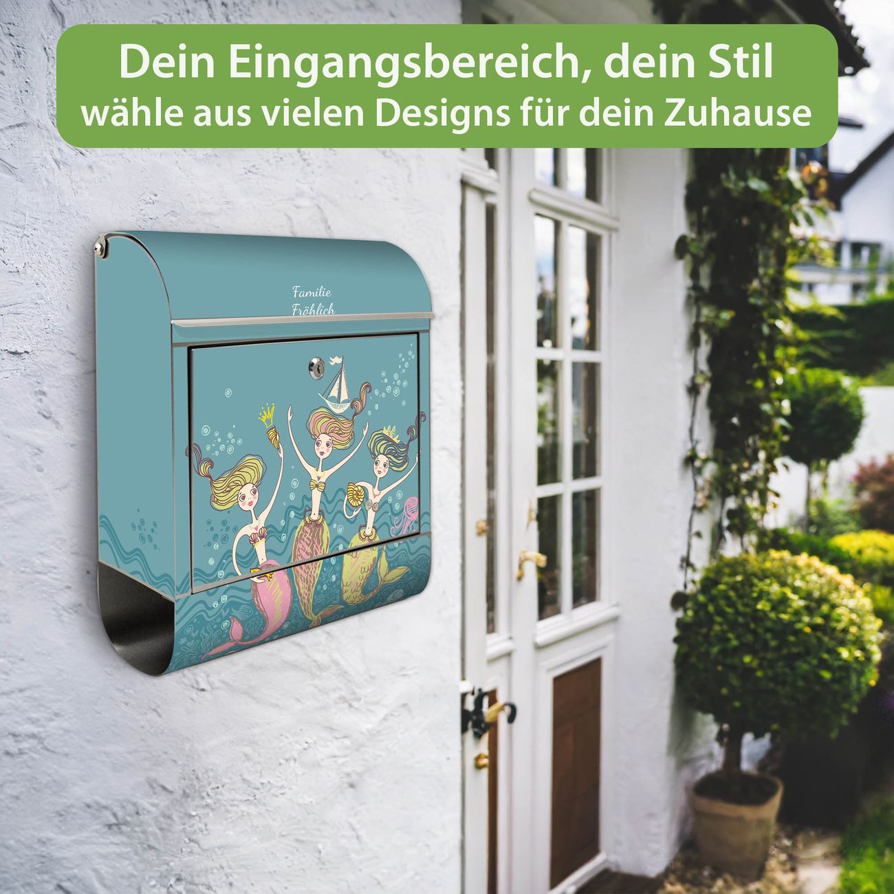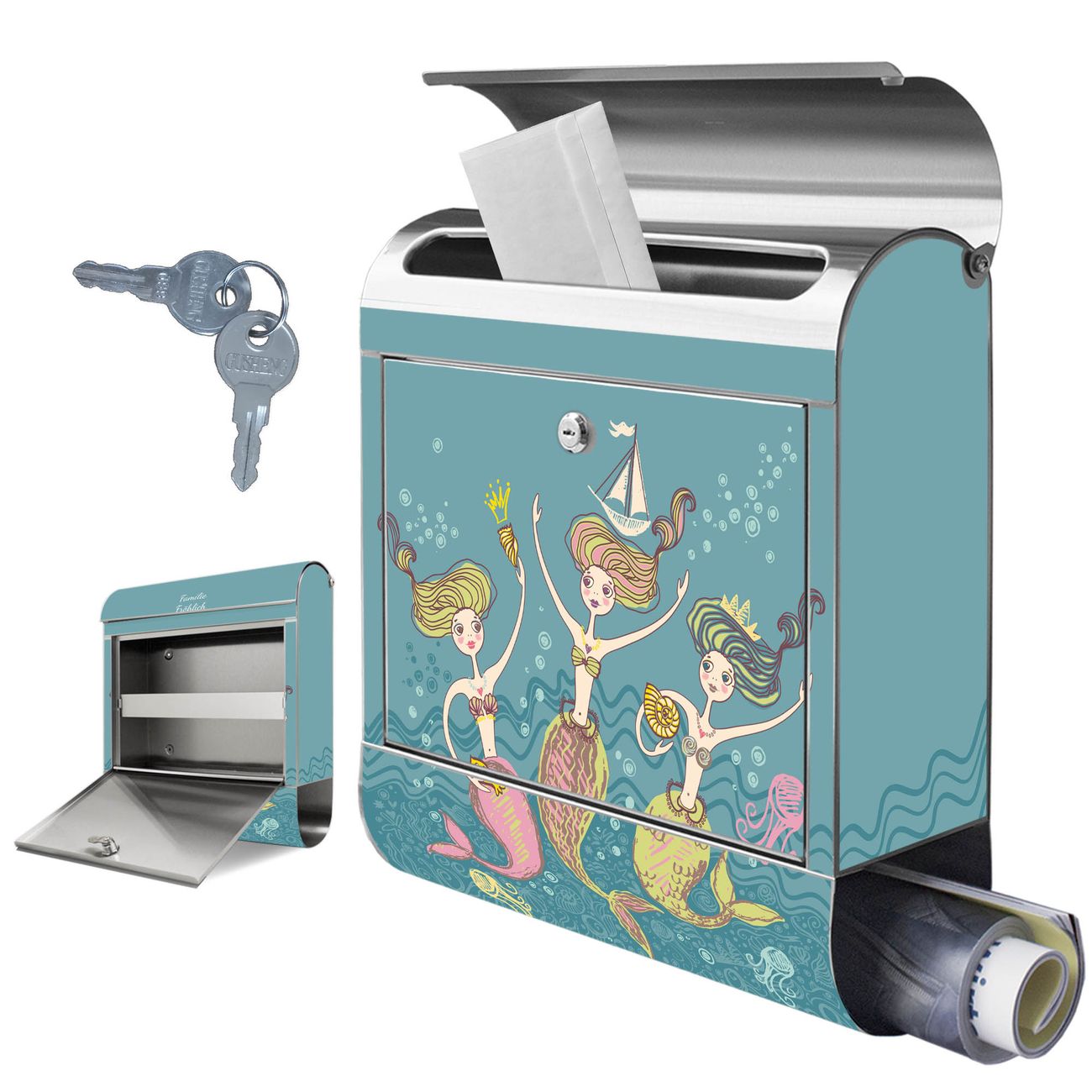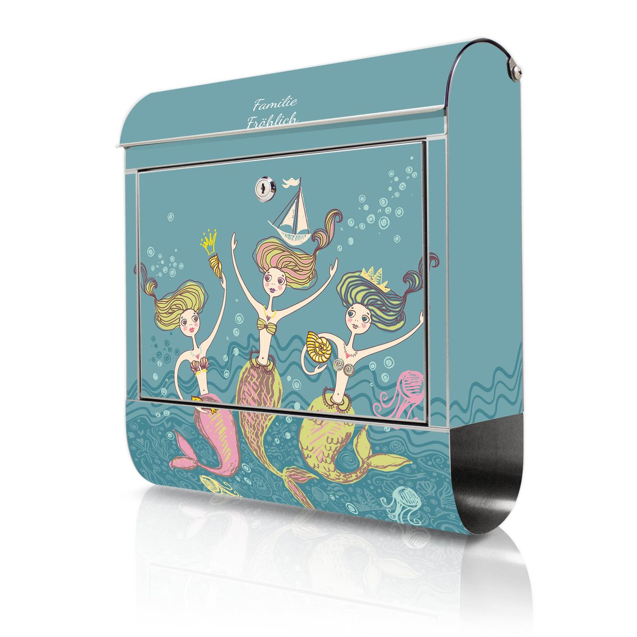 FUNKTION: Der banjado Edelstahl Briefkasten mit Motiv Motiv Nixen bietet Ihnen mit seinem Fassungsvermögen genügend Platz auch für große A4 Sendungen. Das integrierte Zeitungsfach eignet sich hervorragend um unkompliziert die Tageszeitung zu fassen. Auf Wunsch können Sie bei uns den passenden Ständer kaufen und so aus dem Wandbriefkasten einen Standbriefkasten machen. DESIGN: Der Motivbriefkasten hat ein sehr ansprechendes und ausgefallenes Design, damit entlocken Sie Ihren Nachbarn und dem Postboten ein Lächeln. Heben Sie Sich ab von der tristen grauen Masse ohne auf Funktionalität zu verzichten. DETAILS: Der Design Briefkasten mit Motiv Motiv Nixen besteht aus hochwertigem 18/0 Edelstahl. Das Motiv besteht aus einer wetter- und UV-resistenten Folie, die mit einem Schutzlaminat überzogen ist. Der Briefkasten wird mit Montagematerial und zwei Schlüsseln geliefert. NUTZEN: Sie können diesen Briefkasten sowohl als Wandbriefkasten montieren oder einen passenden Ständer auswählen und als Standbriefkasten einbetonieren. Die Größe bietet genügend Platz für Sendungen aller Art, das hochwertige Edelstahl ist rostfrei und die Motivfolie absolut wetterfest. SCHUTZ: Um Ihre Post optimal vor Witterungseinflüssen wie Starkregen zu schützen, empfehlen wir, den Briefkasten geschützt anzubringen. BANJADO: Ihr Briefkasten wird in Sachsen in einer kleinen Manufaktur von Hand veredelt. Die Motivfolie ist lösungsmittelfrei und schutzlaminiert, dies sorgt für einen langen Halt. Wir legen großen Wert auf die Verbindung von Funktionalität und Design. Sie erhalten Handarbeit aus Sachsen.