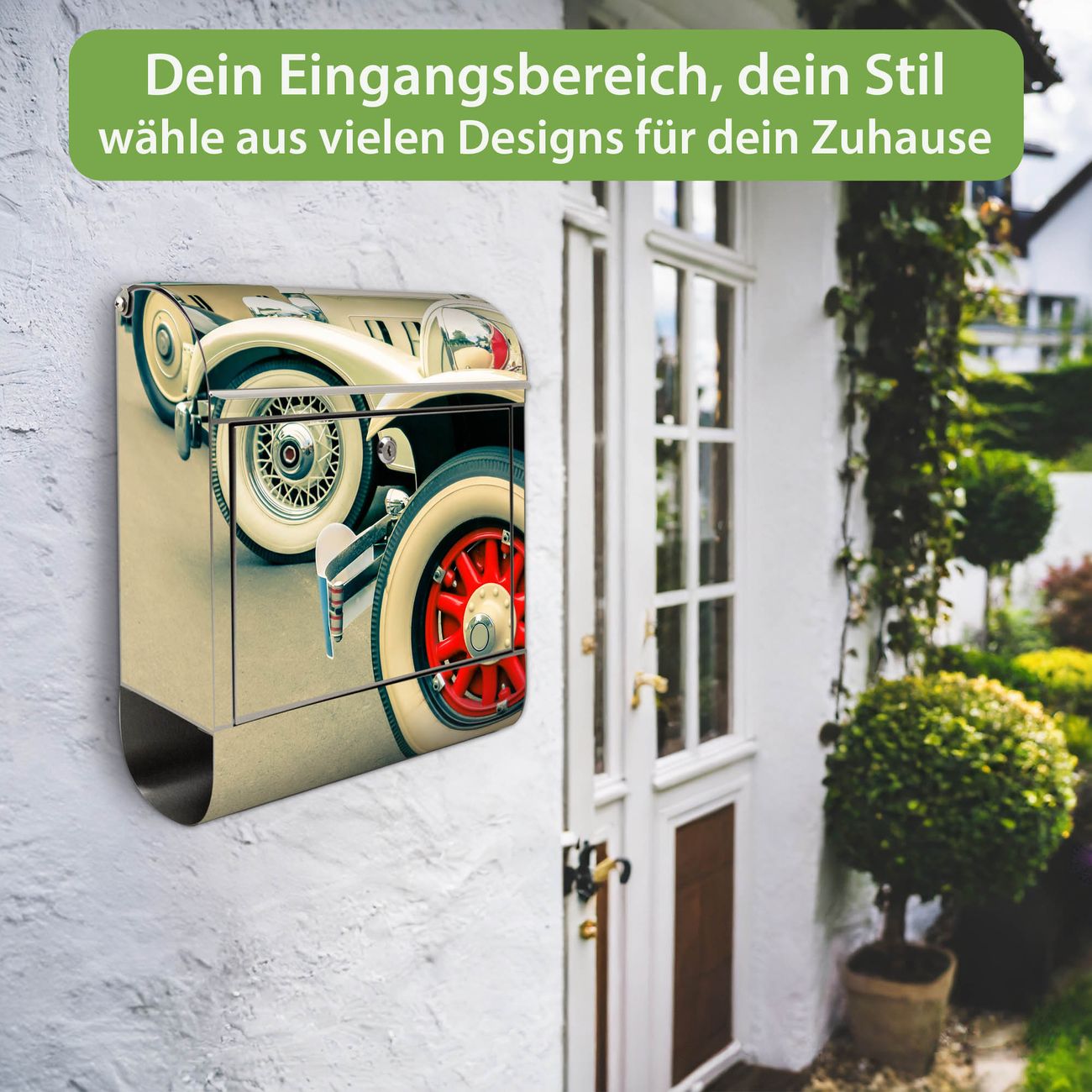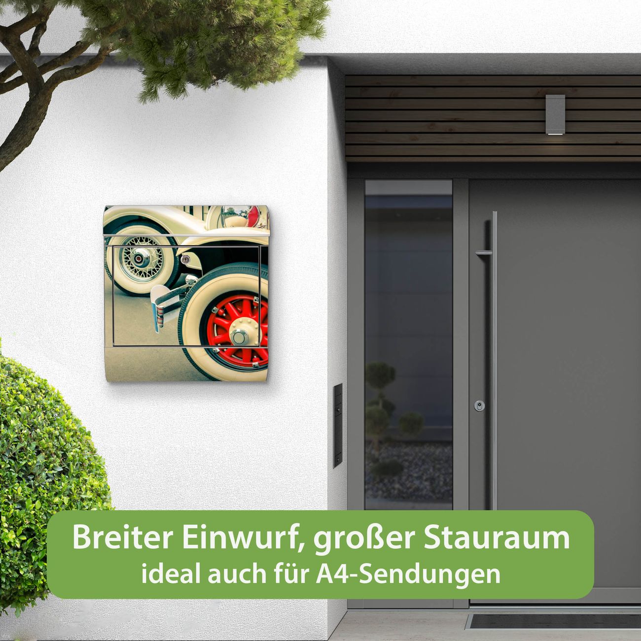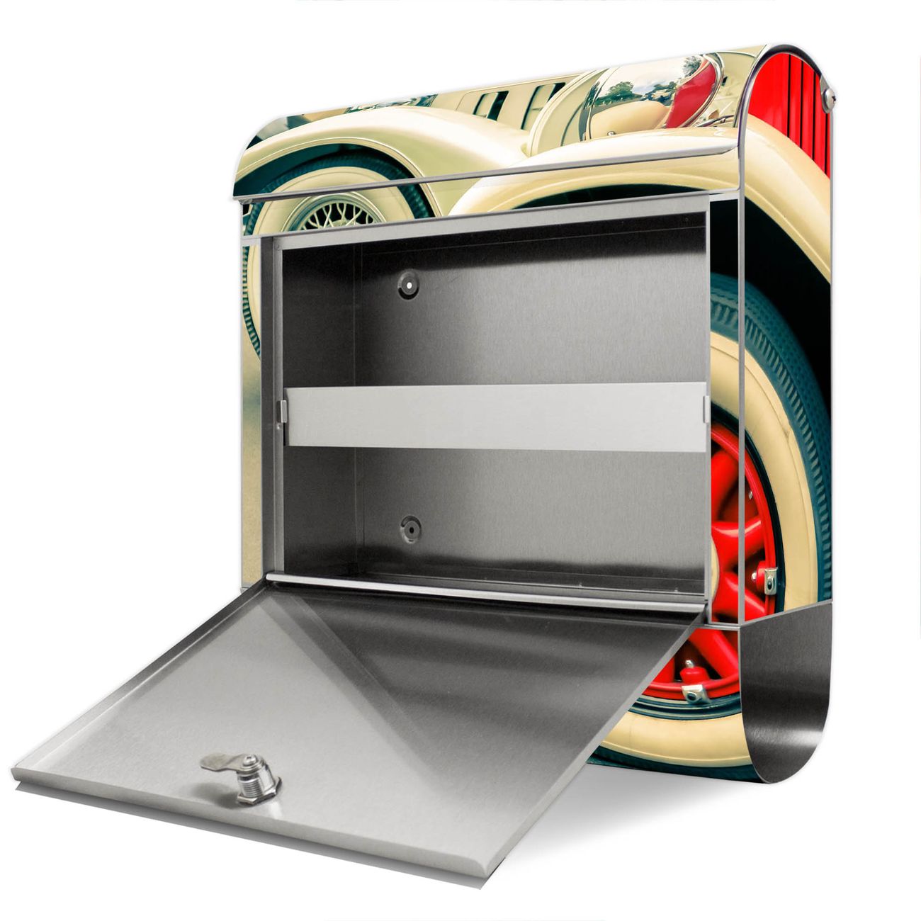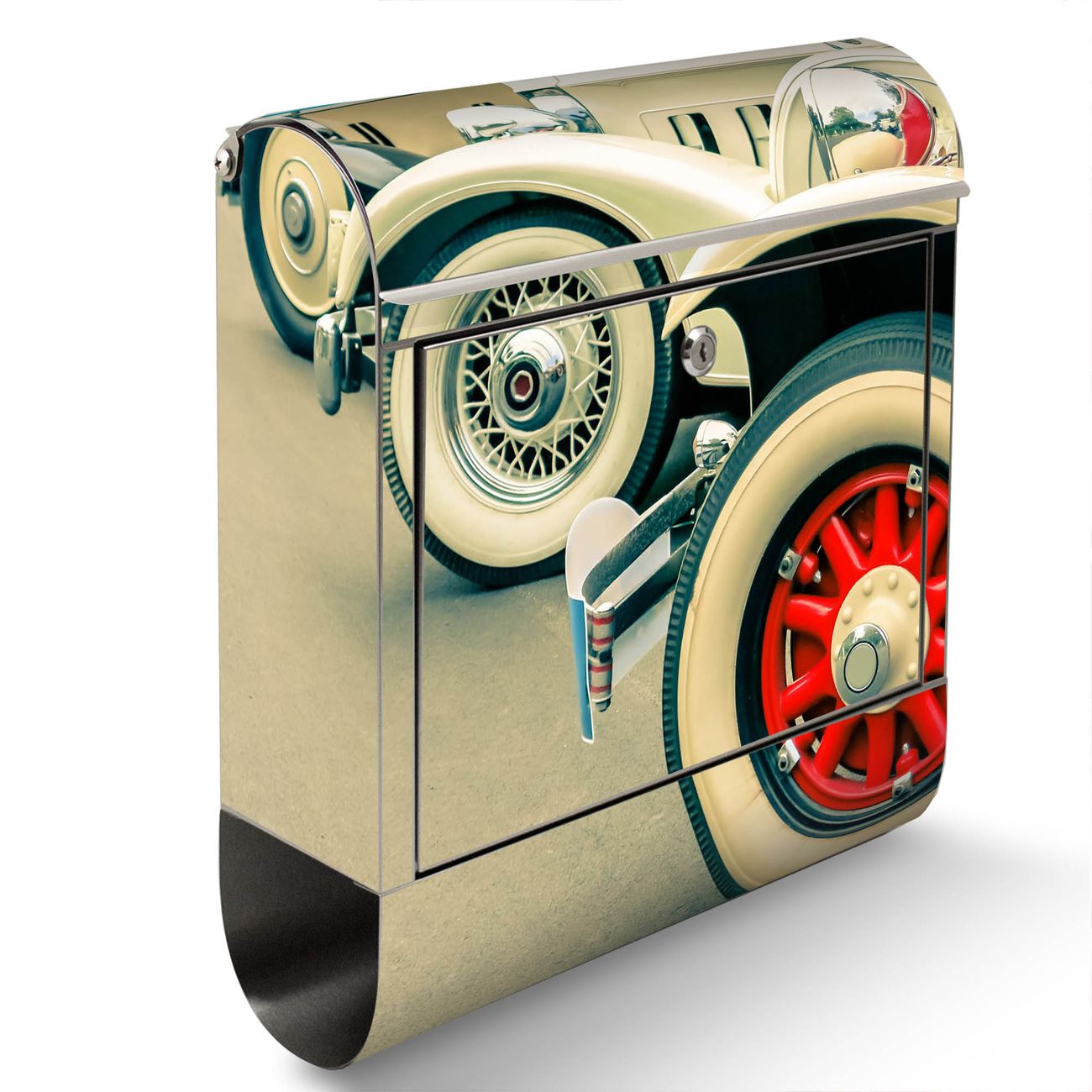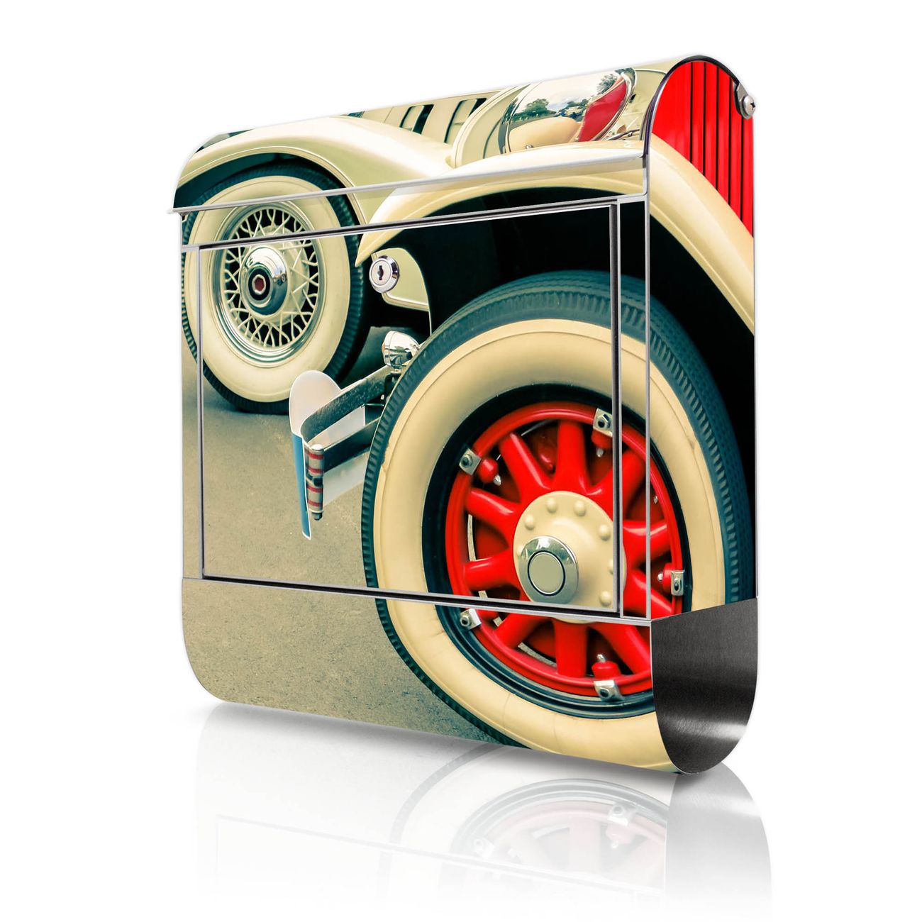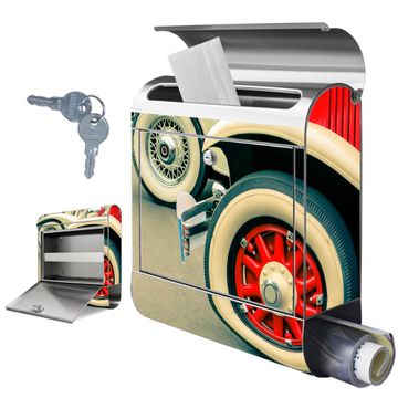 Wandbriefkasten Edelstahl Motiv Oldtimer Räder