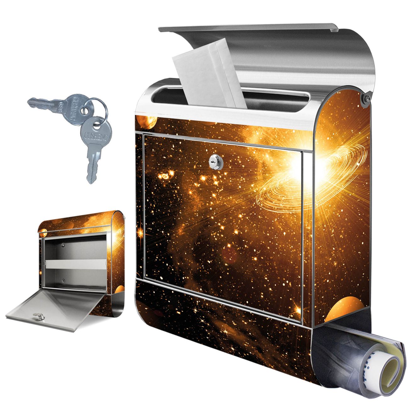 Wandbriefkasten Edelstahl Motiv Outer Space