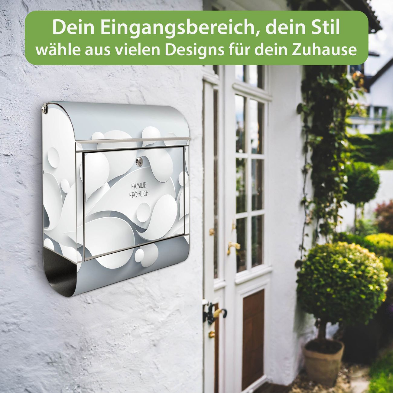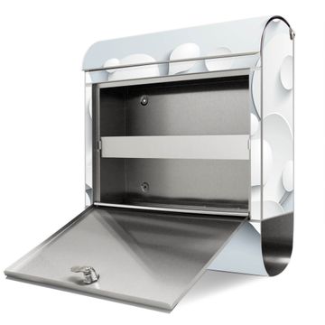 FUNKTION: Der banjado Edelstahl Briefkasten mit Motiv Motiv Papiertropfen bietet Ihnen mit seinem Fassungsvermögen genügend Platz auch für große A4 Sendungen. Das integrierte Zeitungsfach eignet sich hervorragend um unkompliziert die Tageszeitung zu fassen. Auf Wunsch können Sie bei uns den passenden Ständer kaufen und so aus dem Wandbriefkasten einen Standbriefkasten machen. DESIGN: Der Motivbriefkasten hat ein sehr ansprechendes und ausgefallenes Design, damit entlocken Sie Ihren Nachbarn und dem Postboten ein Lächeln. Heben Sie Sich ab von der tristen grauen Masse ohne auf Funktionalität zu verzichten. DETAILS: Der Design Briefkasten mit Motiv Motiv Papiertropfen besteht aus hochwertigem 18/0 Edelstahl. Das Motiv besteht aus einer wetter- und UV-resistenten Folie, die mit einem Schutzlaminat überzogen ist. Der Briefkasten wird mit Montagematerial und zwei Schlüsseln geliefert. NUTZEN: Sie können diesen Briefkasten sowohl als Wandbriefkasten montieren oder einen passenden Ständer auswählen und als Standbriefkasten einbetonieren. Die Größe bietet genügend Platz für Sendungen aller Art, das hochwertige Edelstahl ist rostfrei und die Motivfolie absolut wetterfest. SCHUTZ: Um Ihre Post optimal vor Witterungseinflüssen wie Starkregen zu schützen, empfehlen wir, den Briefkasten geschützt anzubringen. BANJADO: Ihr Briefkasten wird in Sachsen in einer kleinen Manufaktur von Hand veredelt. Die Motivfolie ist lösungsmittelfrei und schutzlaminiert, dies sorgt für einen langen Halt. Wir legen großen Wert auf die Verbindung von Funktionalität und Design. Sie erhalten Handarbeit aus Sachsen.