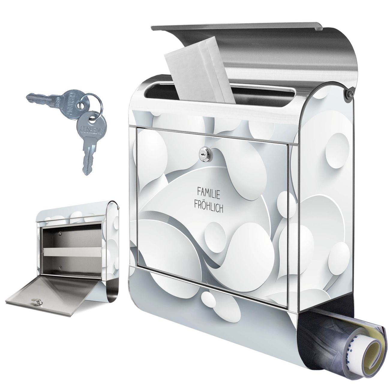 Wandbriefkasten Edelstahl Motiv Papiertropfen