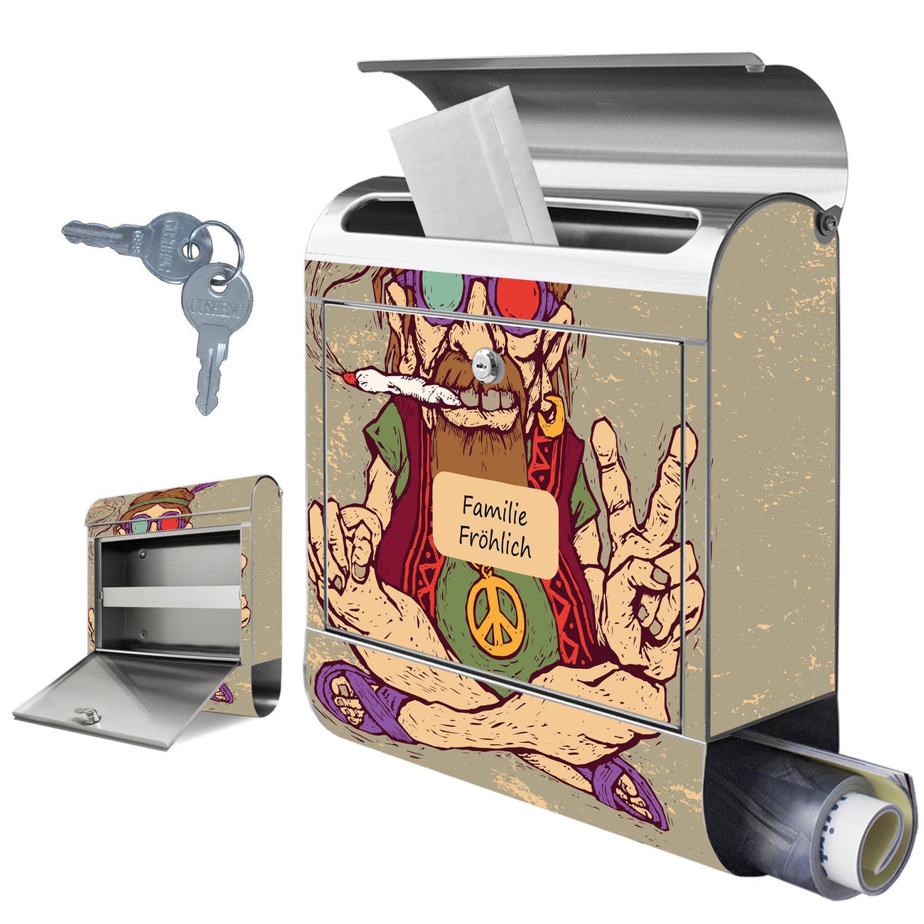 Wandbriefkasten Edelstahl Motiv Peace