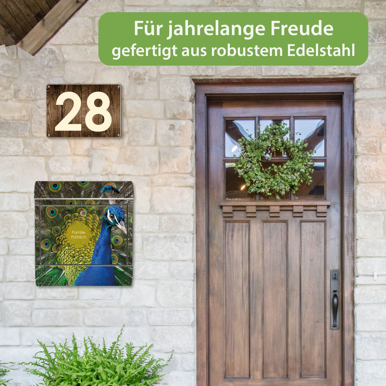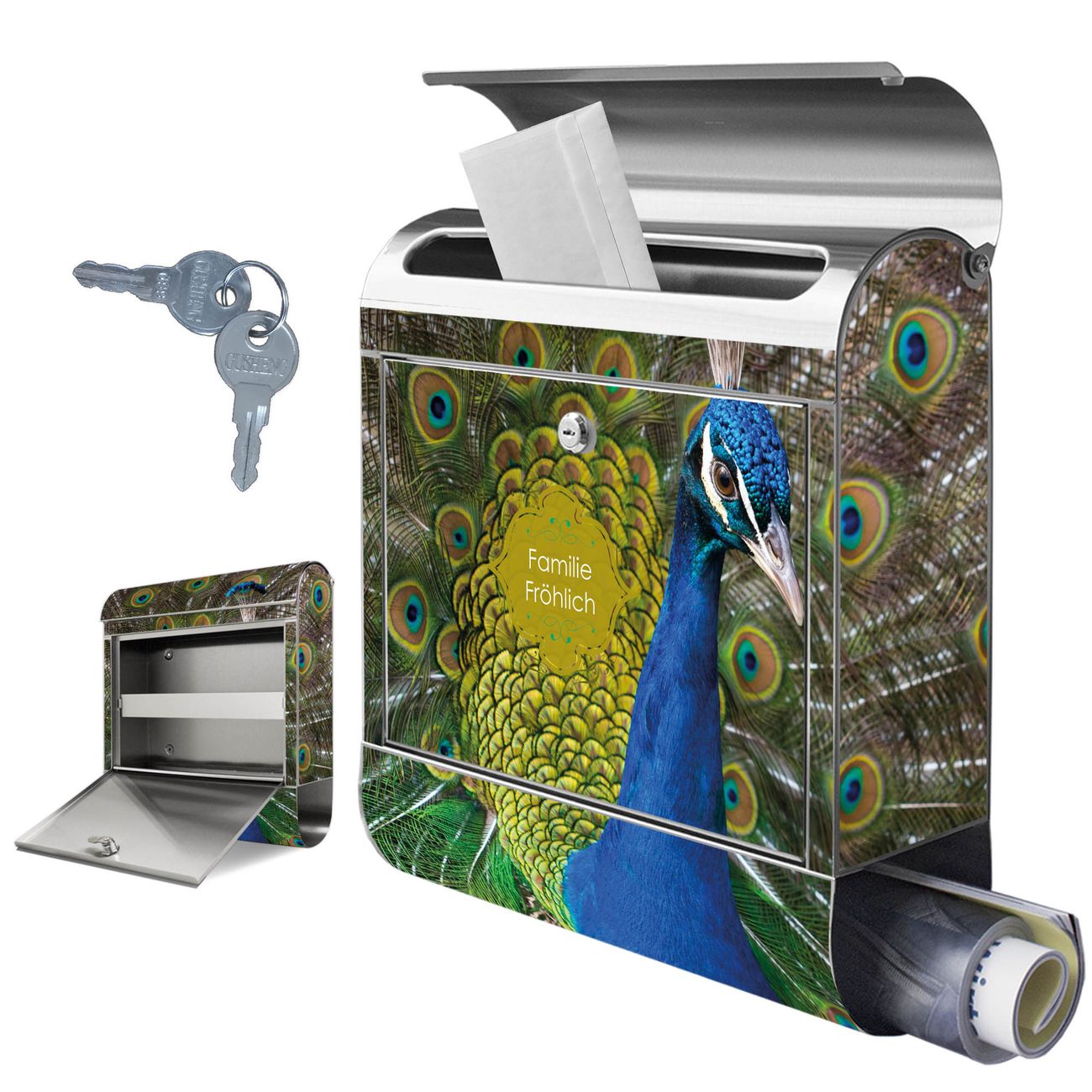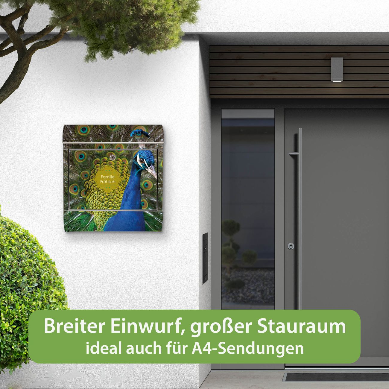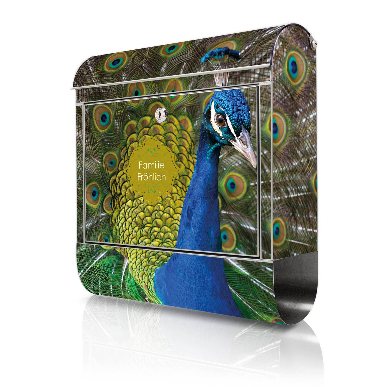 Wandbriefkasten Edelstahl Motiv Pfau