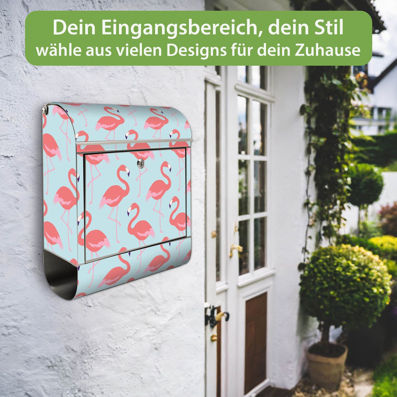 FUNKTION: Der banjado Edelstahl Briefkasten mit Motiv Motiv Pink Tango bietet Ihnen mit seinem Fassungsvermögen genügend Platz auch für große A4 Sendungen. Das integrierte Zeitungsfach eignet sich hervorragend um unkompliziert die Tageszeitung zu fassen. Auf Wunsch können Sie bei uns den passenden Ständer kaufen und so aus dem Wandbriefkasten einen Standbriefkasten machen. DESIGN: Der Motivbriefkasten hat ein sehr ansprechendes und ausgefallenes Design, damit entlocken Sie Ihren Nachbarn und dem Postboten ein Lächeln. Heben Sie Sich ab von der tristen grauen Masse ohne auf Funktionalität zu verzichten. DETAILS: Der Design Briefkasten mit Motiv Motiv Pink Tango besteht aus hochwertigem 18/0 Edelstahl. Das Motiv besteht aus einer wetter- und UV-resistenten Folie, die mit einem Schutzlaminat überzogen ist. Der Briefkasten wird mit Montagematerial und zwei Schlüsseln geliefert. NUTZEN: Sie können diesen Briefkasten sowohl als Wandbriefkasten montieren oder einen passenden Ständer auswählen und als Standbriefkasten einbetonieren. Die Größe bietet genügend Platz für Sendungen aller Art, das hochwertige Edelstahl ist rostfrei und die Motivfolie absolut wetterfest. SCHUTZ: Um Ihre Post optimal vor Witterungseinflüssen wie Starkregen zu schützen, empfehlen wir, den Briefkasten geschützt anzubringen. BANJADO: Ihr Briefkasten wird in Sachsen in einer kleinen Manufaktur von Hand veredelt. Die Motivfolie ist lösungsmittelfrei und schutzlaminiert, dies sorgt für einen langen Halt. Wir legen großen Wert auf die Verbindung von Funktionalität und Design. Sie erhalten Handarbeit aus Sachsen.