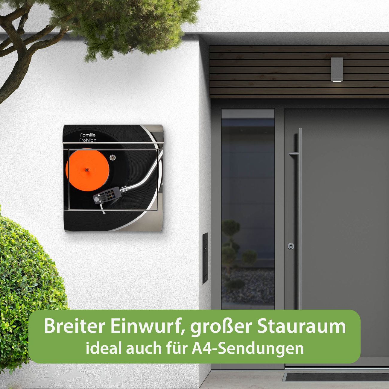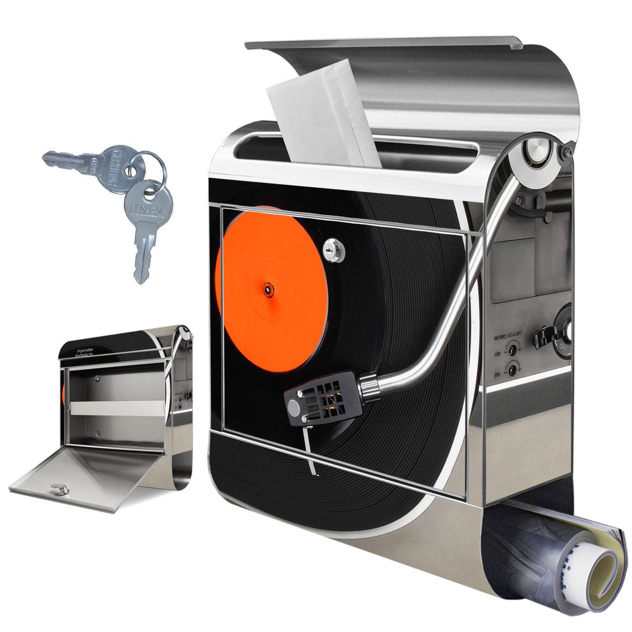 Wandbriefkasten Edelstahl Motiv Plattenspieler