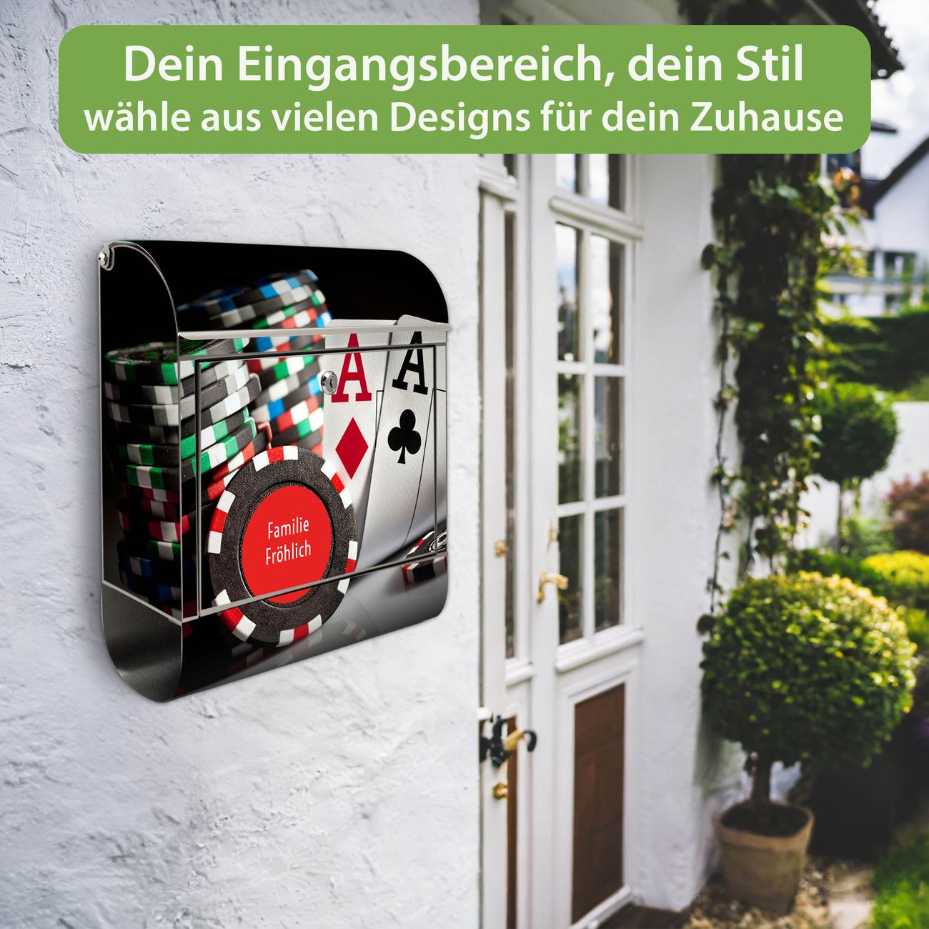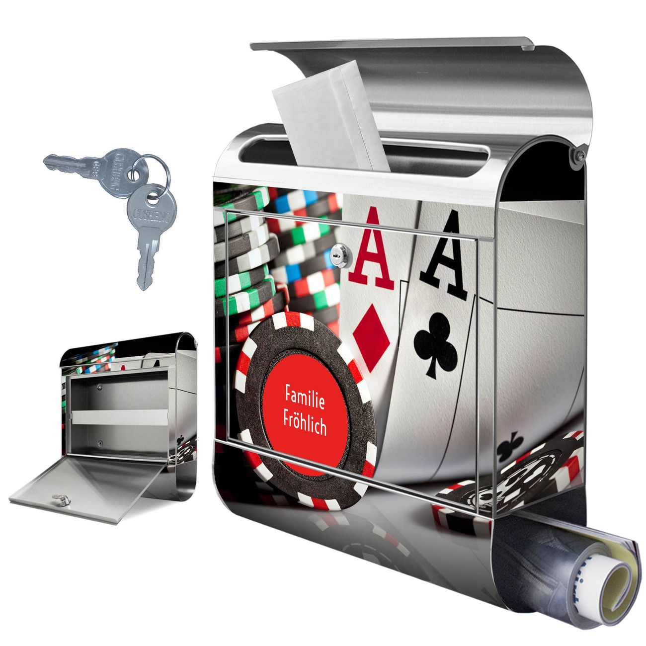 Wandbriefkasten Edelstahl Motiv Poker