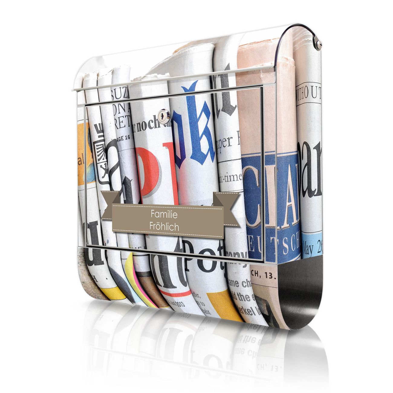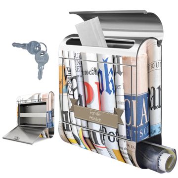 FUNKTION: Der banjado Edelstahl Briefkasten mit Motiv Motiv Presse bietet Ihnen mit seinem Fassungsvermögen genügend Platz auch für große A4 Sendungen. Das integrierte Zeitungsfach eignet sich hervorragend um unkompliziert die Tageszeitung zu fassen. Auf Wunsch können Sie bei uns den passenden Ständer kaufen und so aus dem Wandbriefkasten einen Standbriefkasten machen. DESIGN: Der Motivbriefkasten hat ein sehr ansprechendes und ausgefallenes Design, damit entlocken Sie Ihren Nachbarn und dem Postboten ein Lächeln. Heben Sie Sich ab von der tristen grauen Masse ohne auf Funktionalität zu verzichten. DETAILS: Der Design Briefkasten mit Motiv Motiv Presse besteht aus hochwertigem 18/0 Edelstahl. Das Motiv besteht aus einer wetter- und UV-resistenten Folie, die mit einem Schutzlaminat überzogen ist. Der Briefkasten wird mit Montagematerial und zwei Schlüsseln geliefert. NUTZEN: Sie können diesen Briefkasten sowohl als Wandbriefkasten montieren oder einen passenden Ständer auswählen und als Standbriefkasten einbetonieren. Die Größe bietet genügend Platz für Sendungen aller Art, das hochwertige Edelstahl ist rostfrei und die Motivfolie absolut wetterfest. SCHUTZ: Um Ihre Post optimal vor Witterungseinflüssen wie Starkregen zu schützen, empfehlen wir, den Briefkasten geschützt anzubringen. BANJADO: Ihr Briefkasten wird in Sachsen in einer kleinen Manufaktur von Hand veredelt. Die Motivfolie ist lösungsmittelfrei und schutzlaminiert, dies sorgt für einen langen Halt. Wir legen großen Wert auf die Verbindung von Funktionalität und Design. Sie erhalten Handarbeit aus Sachsen.