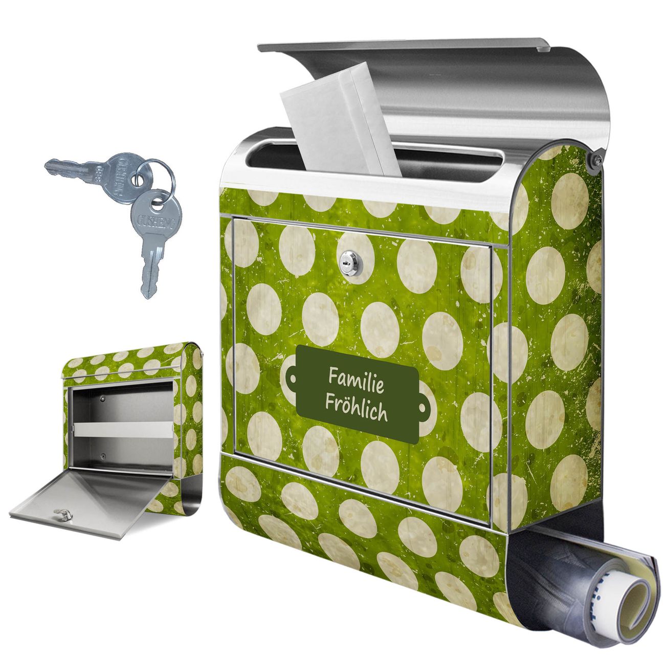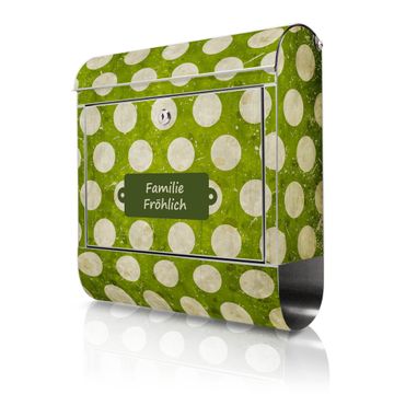 Wandbriefkasten Edelstahl Motiv Punkte Grün Vintage