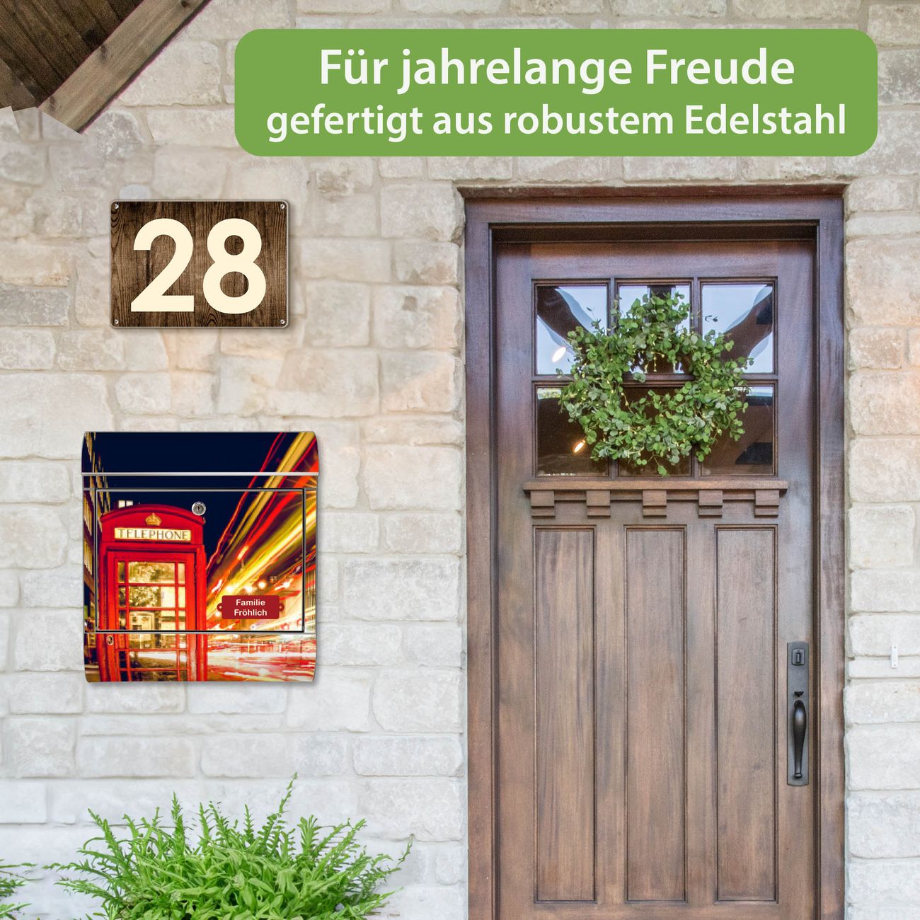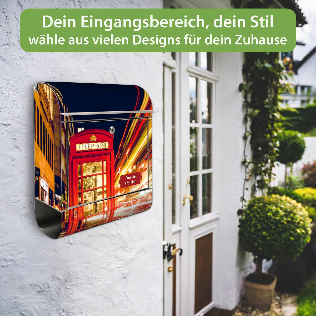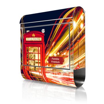 Wandbriefkasten Edelstahl Motiv Red Telephone Trafic