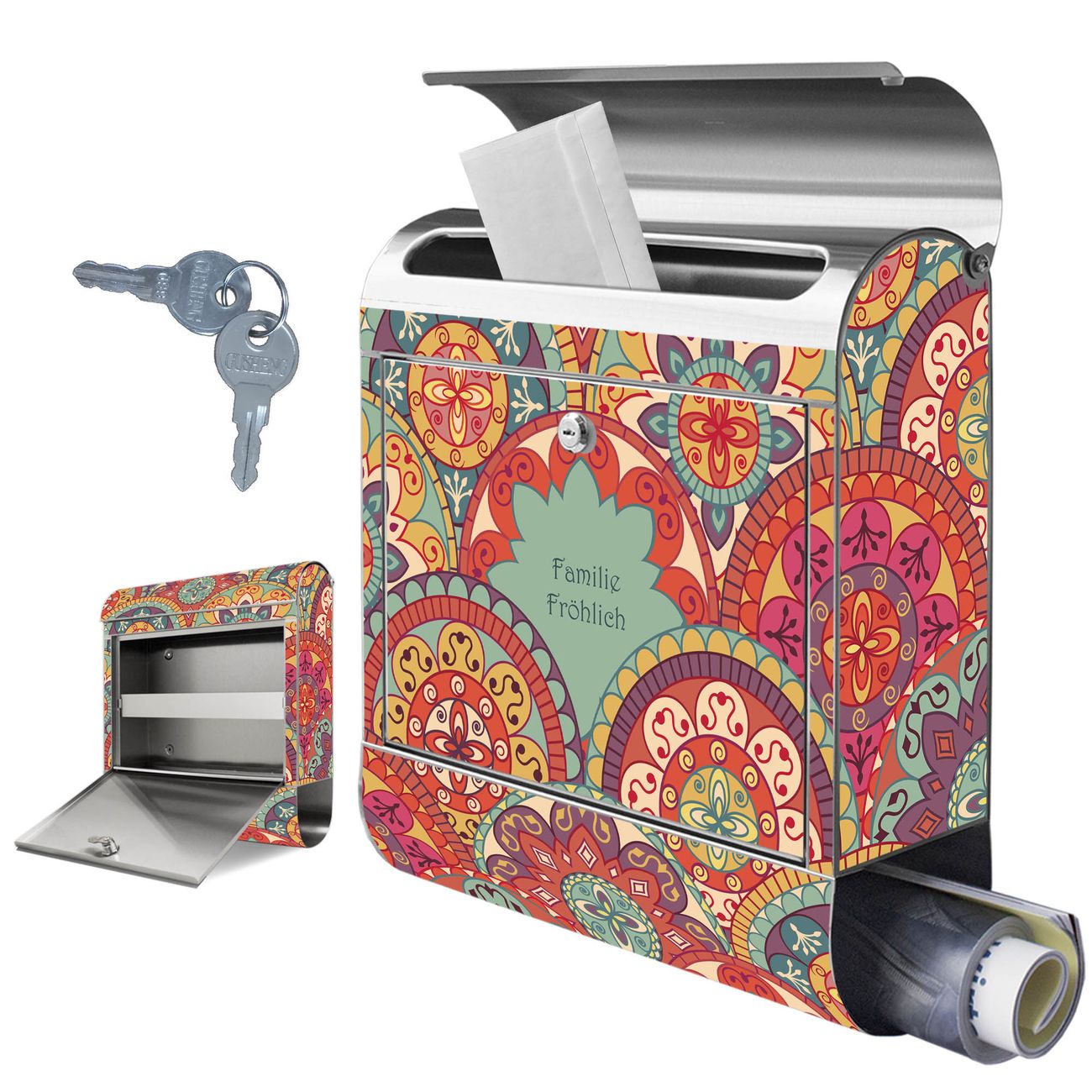 Wandbriefkasten Edelstahl Motiv Rosetten