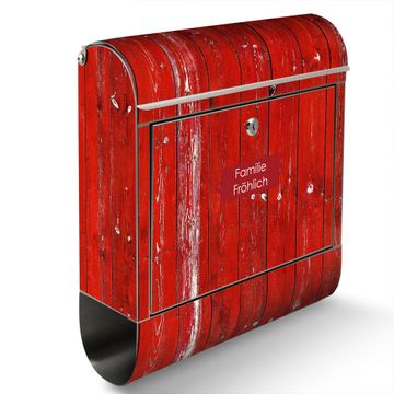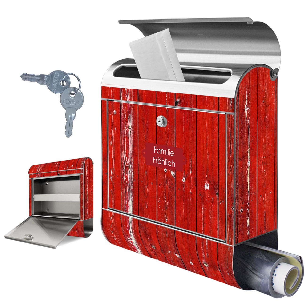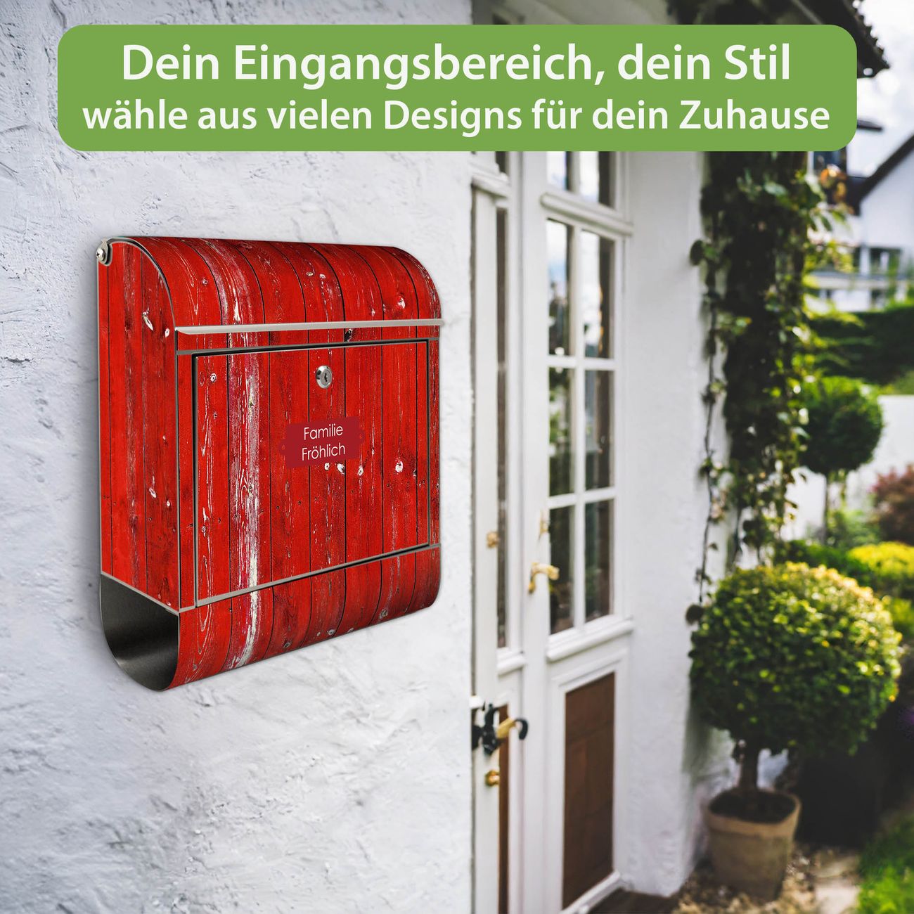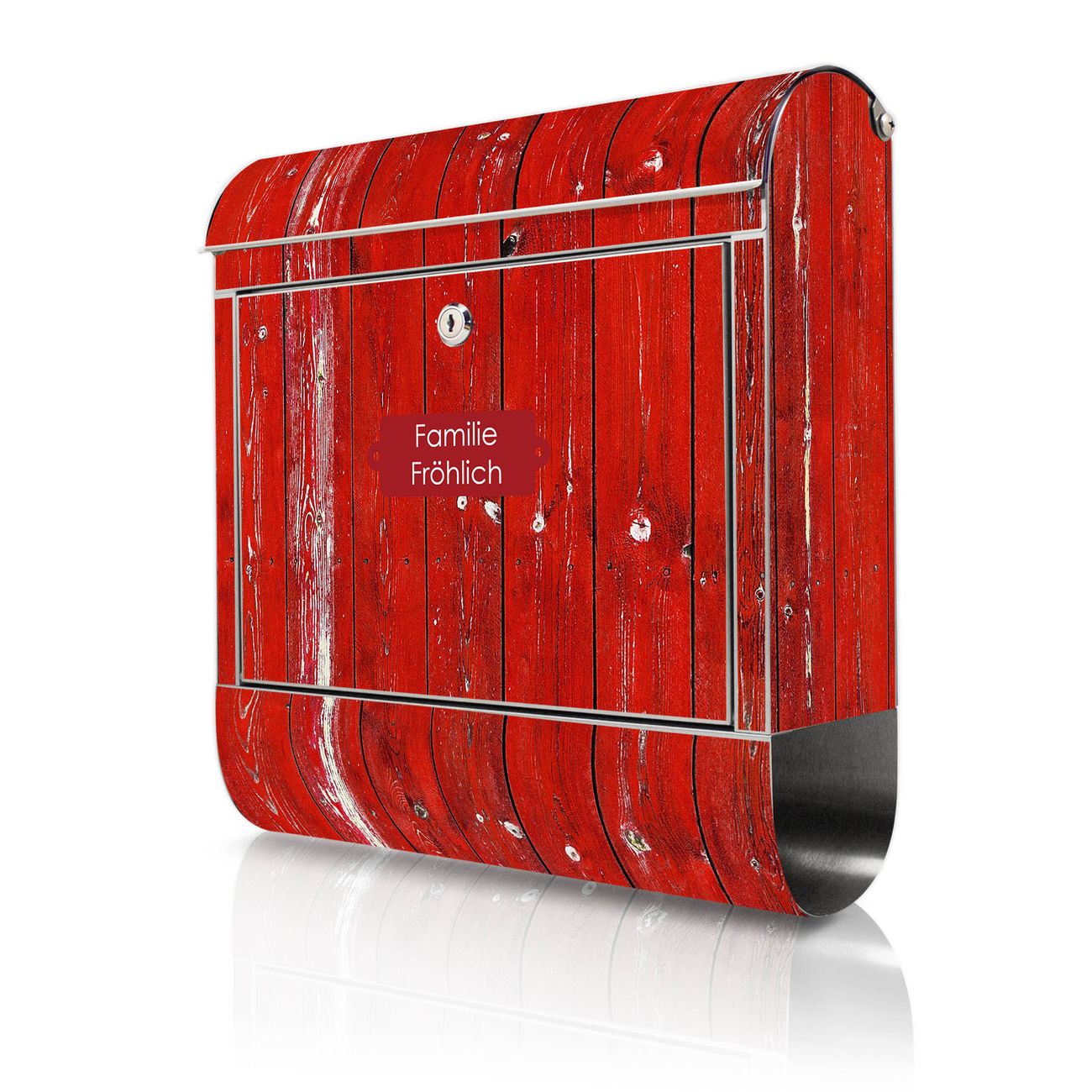 Wandbriefkasten Edelstahl Motiv Rote Holzlatten