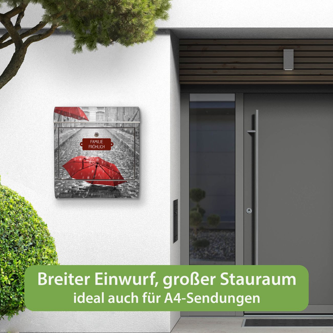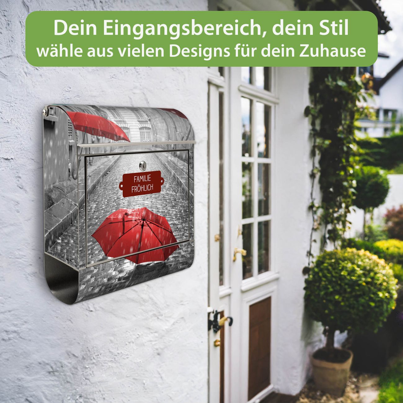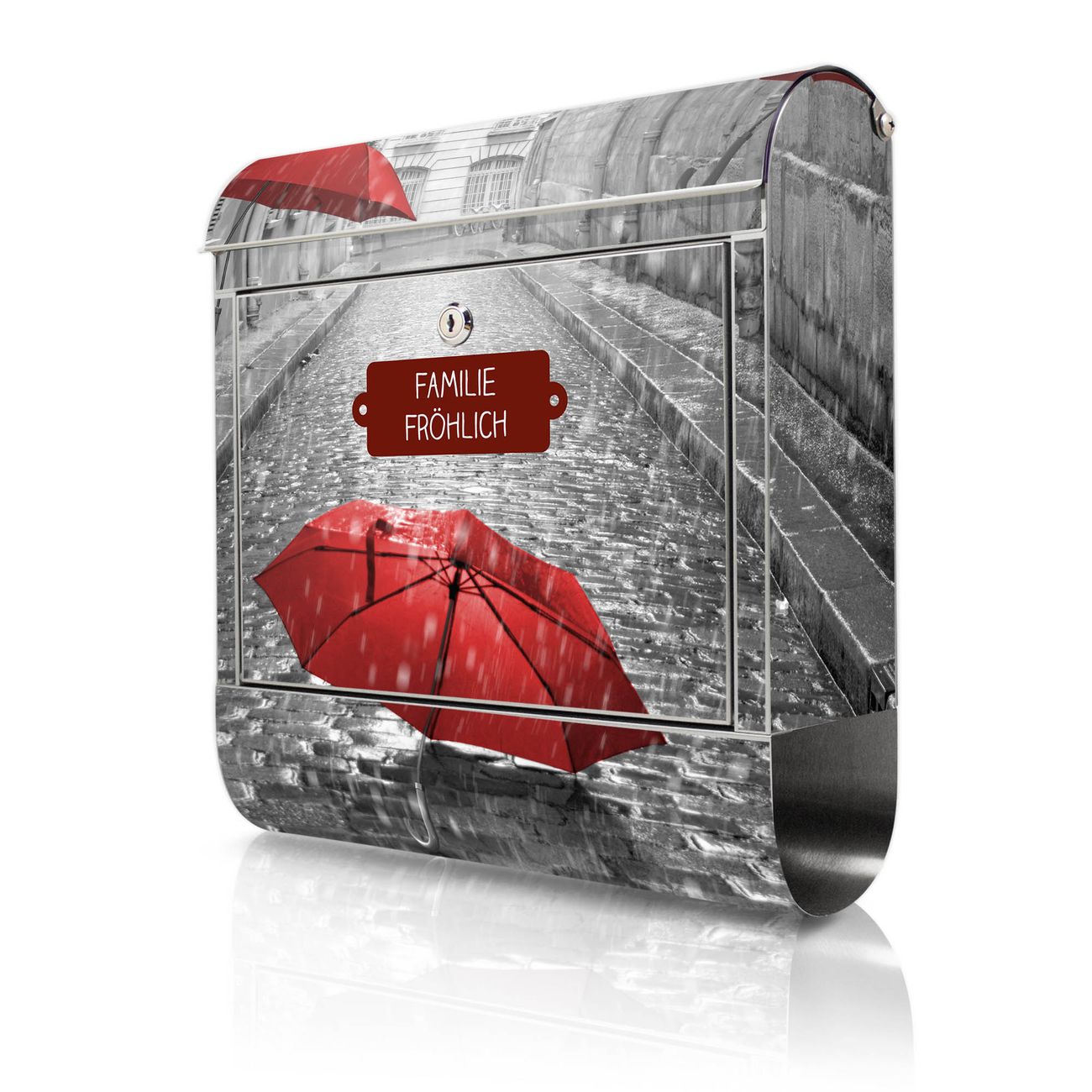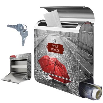 Wandbriefkasten Edelstahl Motiv Rote Schirme