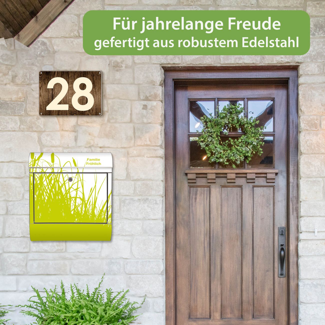 Wandbriefkasten Edelstahl Motiv Schilf