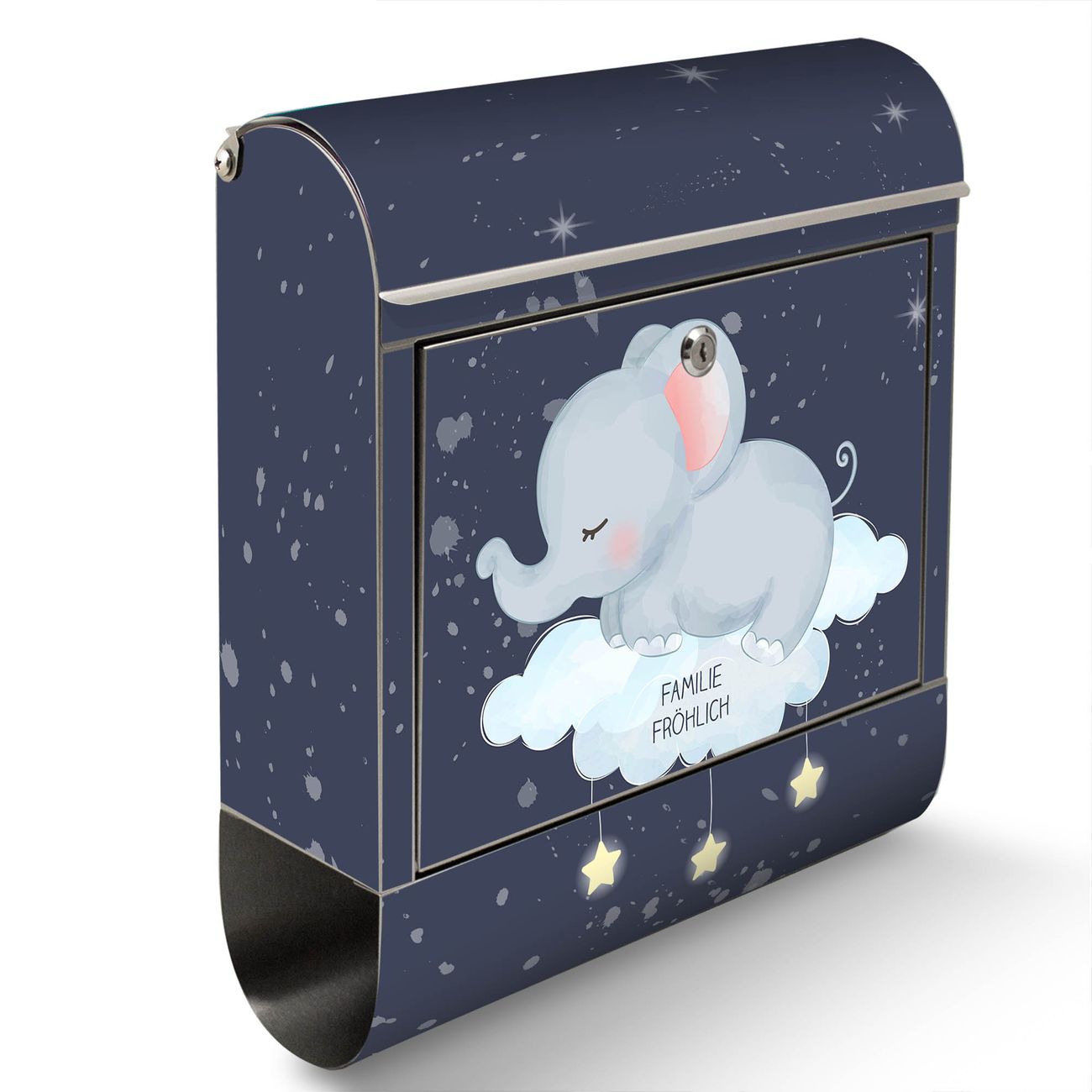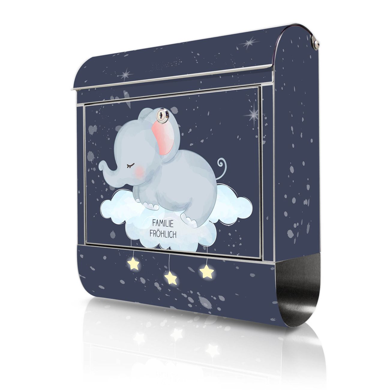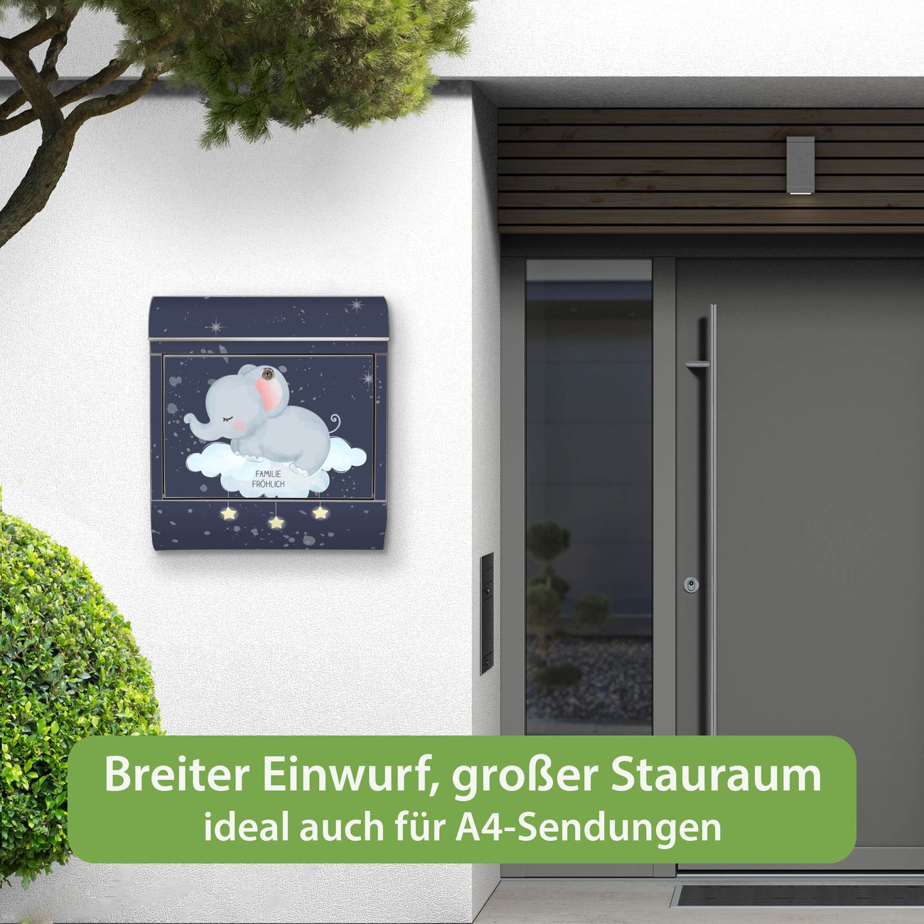Wandbriefkasten Edelstahl Motiv schlafender Elefant