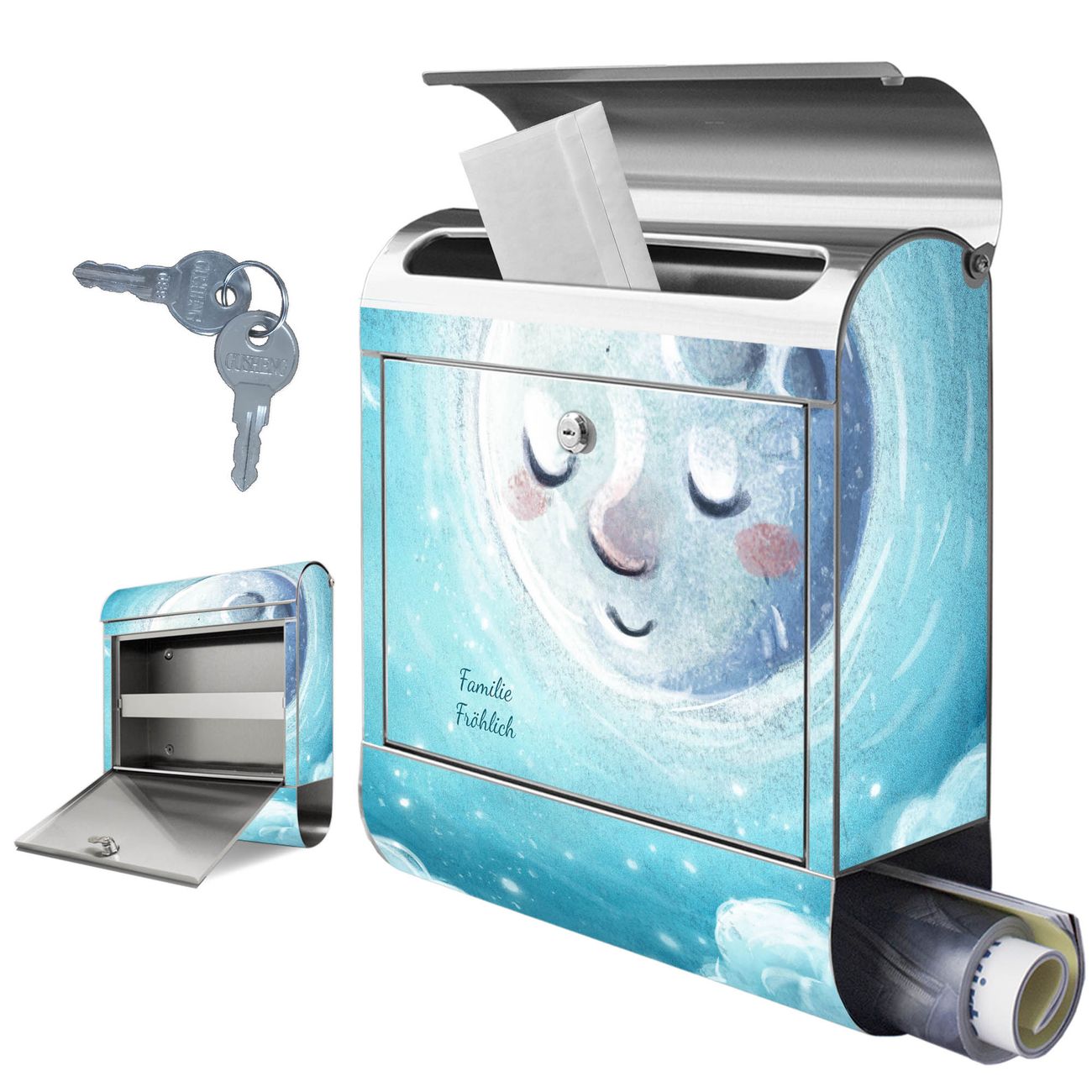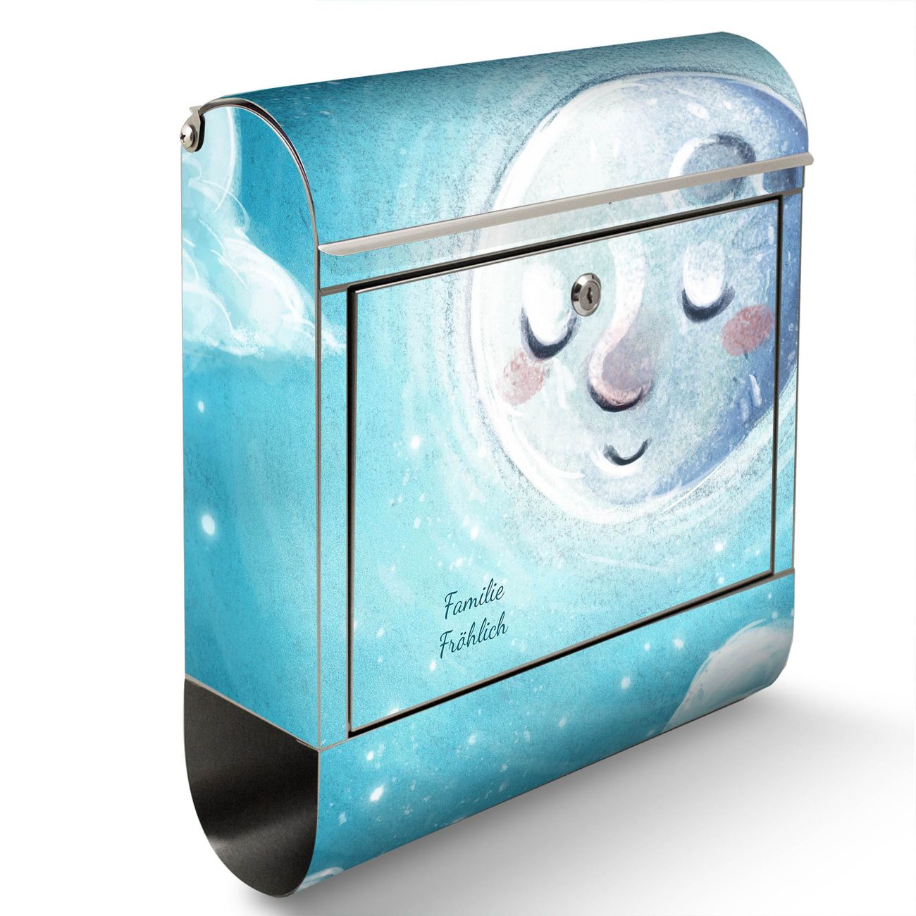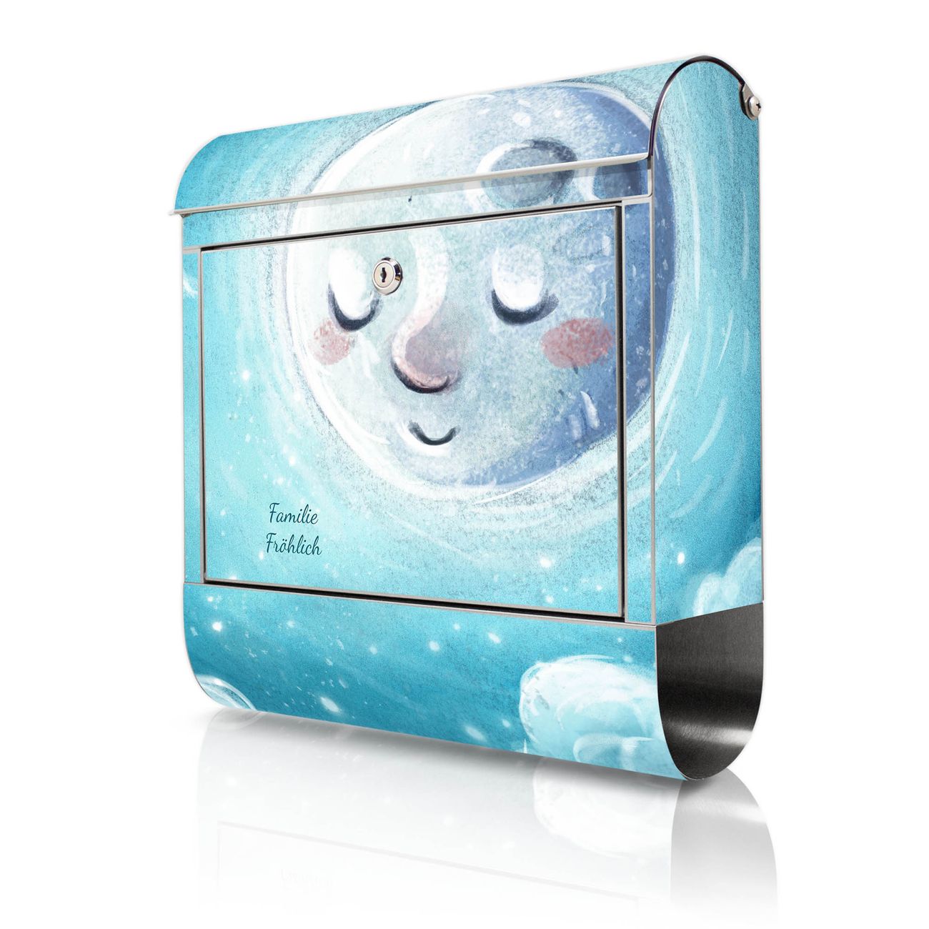 Wandbriefkasten Edelstahl Motiv schlafender Mond