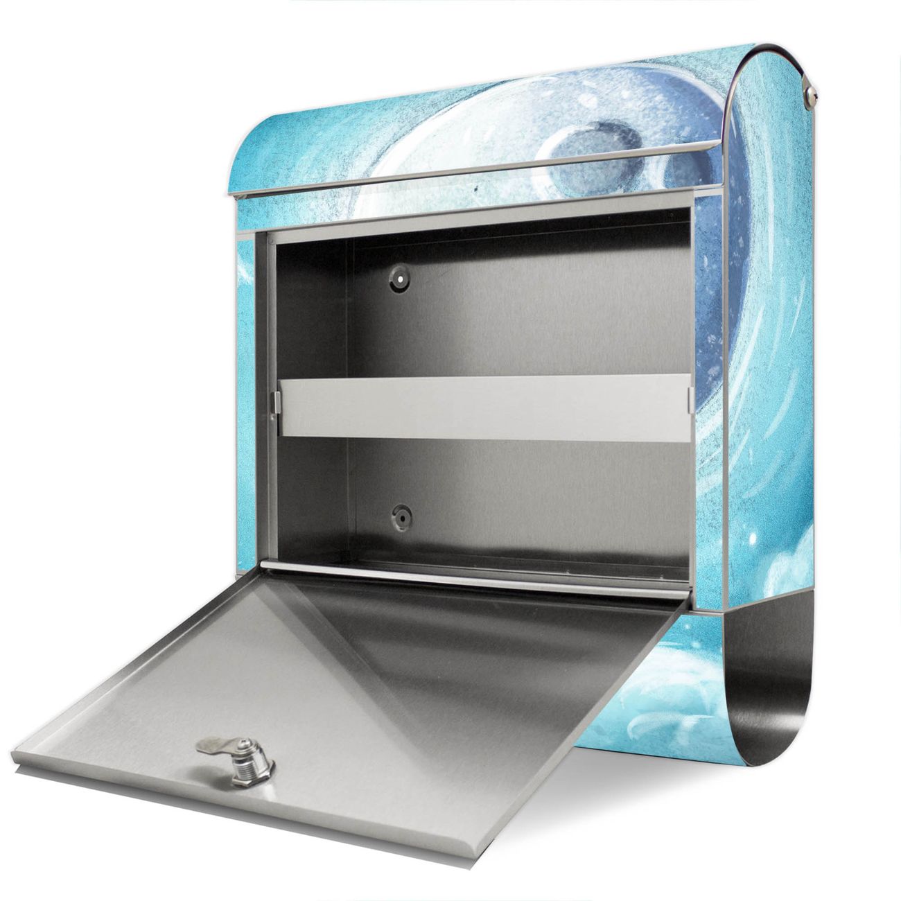 FUNKTION: Der banjado Edelstahl Briefkasten mit Motiv Motiv schlafender Mond bietet Ihnen mit seinem Fassungsvermögen genügend Platz auch für große A4 Sendungen. Das integrierte Zeitungsfach eignet sich hervorragend um unkompliziert die Tageszeitung zu fassen. Auf Wunsch können Sie bei uns den passenden Ständer kaufen und so aus dem Wandbriefkasten einen Standbriefkasten machen. DESIGN: Der Motivbriefkasten hat ein sehr ansprechendes und ausgefallenes Design, damit entlocken Sie Ihren Nachbarn und dem Postboten ein Lächeln. Heben Sie Sich ab von der tristen grauen Masse ohne auf Funktionalität zu verzichten. DETAILS: Der Design Briefkasten mit Motiv Motiv schlafender Mond besteht aus hochwertigem 18/0 Edelstahl. Das Motiv besteht aus einer wetter- und UV-resistenten Folie, die mit einem Schutzlaminat überzogen ist. Der Briefkasten wird mit Montagematerial und zwei Schlüsseln geliefert. NUTZEN: Sie können diesen Briefkasten sowohl als Wandbriefkasten montieren oder einen passenden Ständer auswählen und als Standbriefkasten einbetonieren. Die Größe bietet genügend Platz für Sendungen aller Art, das hochwertige Edelstahl ist rostfrei und die Motivfolie absolut wetterfest. SCHUTZ: Um Ihre Post optimal vor Witterungseinflüssen wie Starkregen zu schützen, empfehlen wir, den Briefkasten geschützt anzubringen. BANJADO: Ihr Briefkasten wird in Sachsen in einer kleinen Manufaktur von Hand veredelt. Die Motivfolie ist lösungsmittelfrei und schutzlaminiert, dies sorgt für einen langen Halt. Wir legen großen Wert auf die Verbindung von Funktionalität und Design. Sie erhalten Handarbeit aus Sachsen.