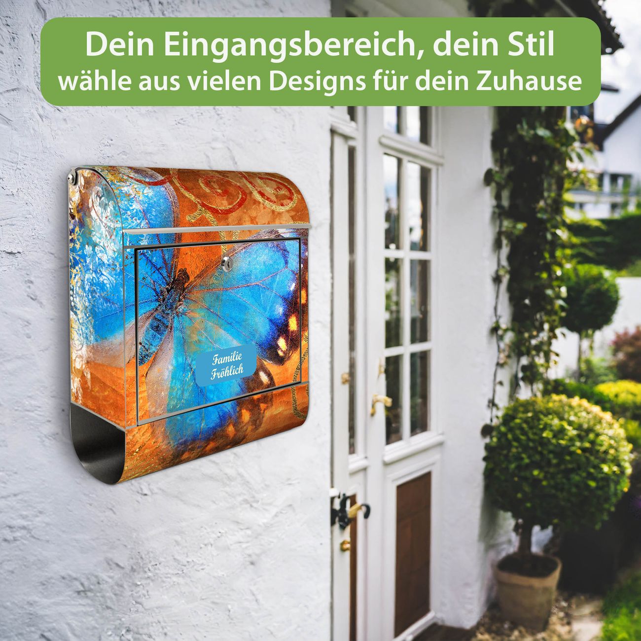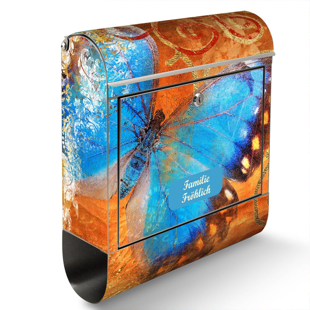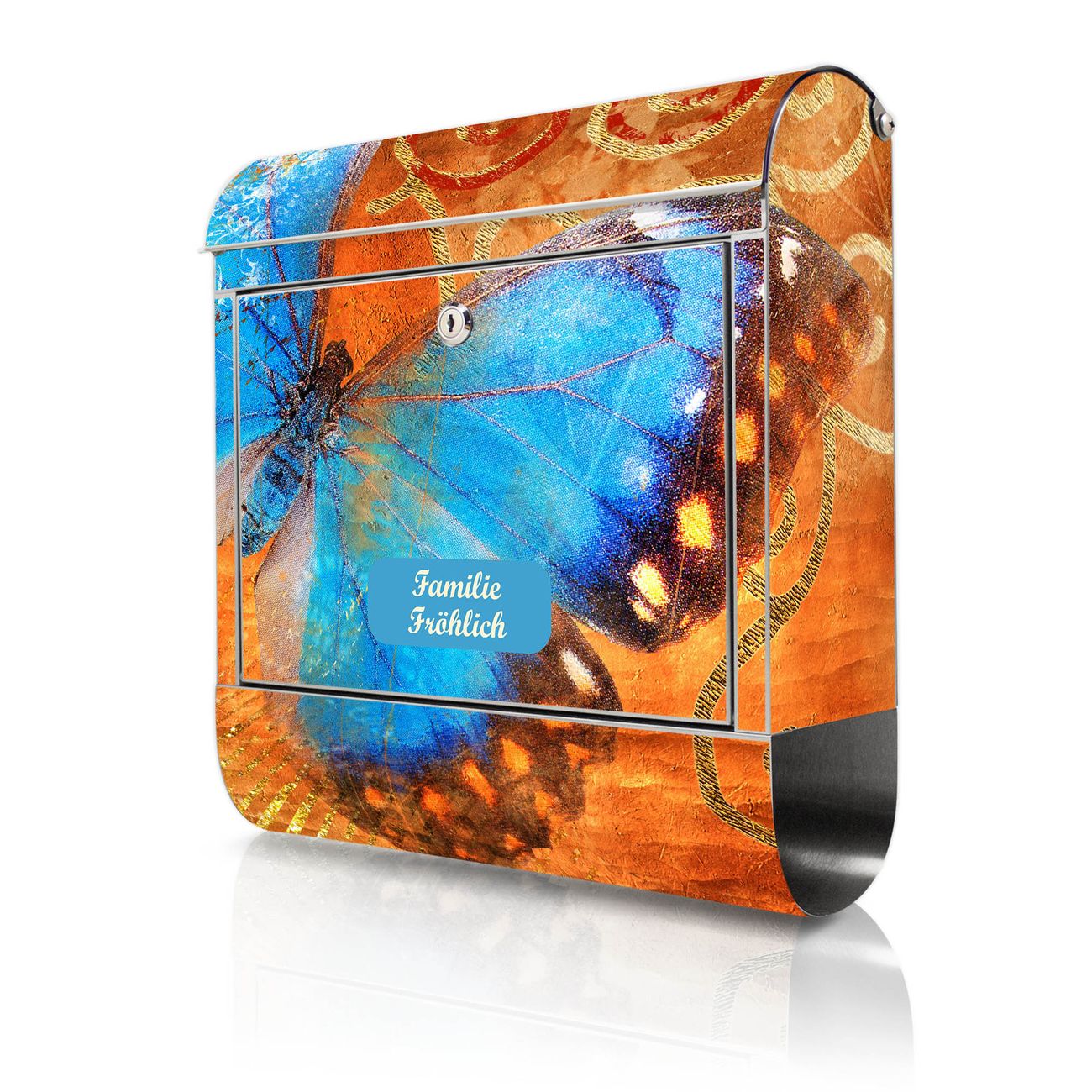 Wandbriefkasten Edelstahl Motiv Schmetterling