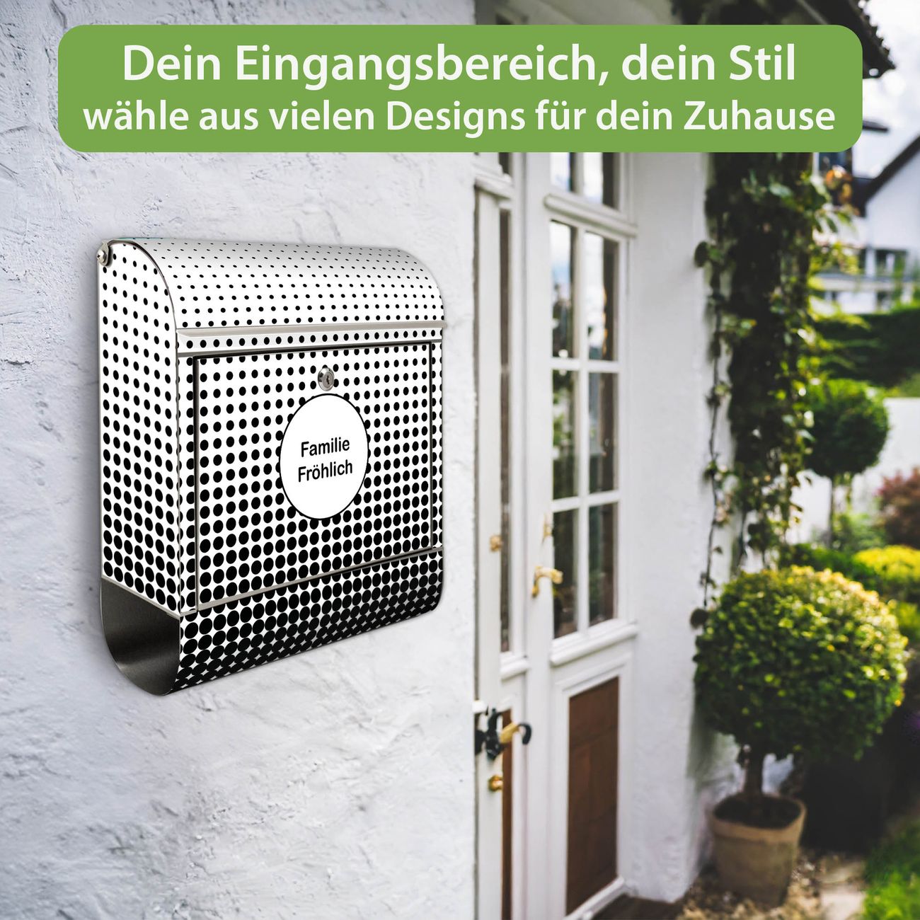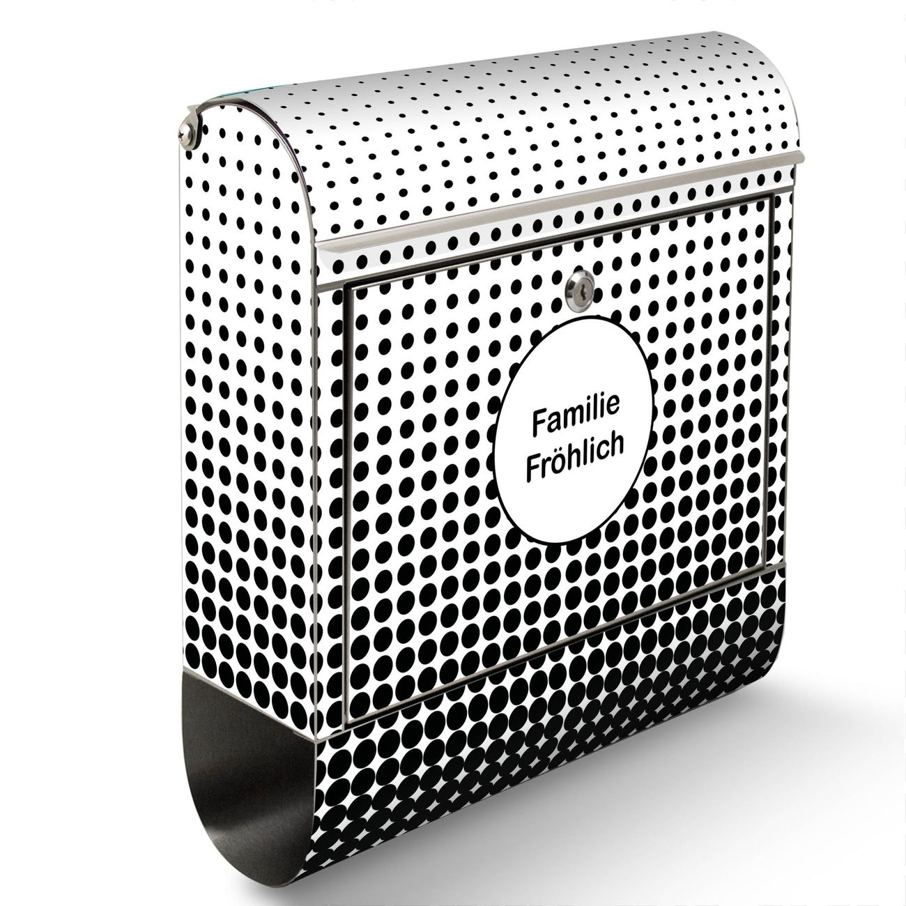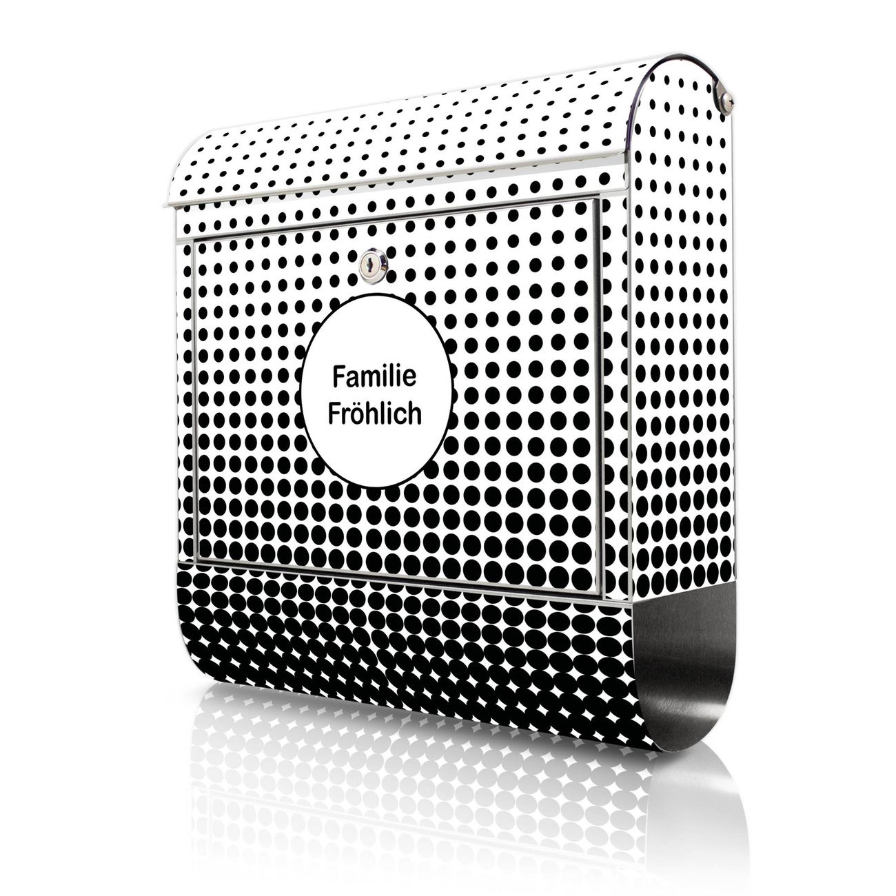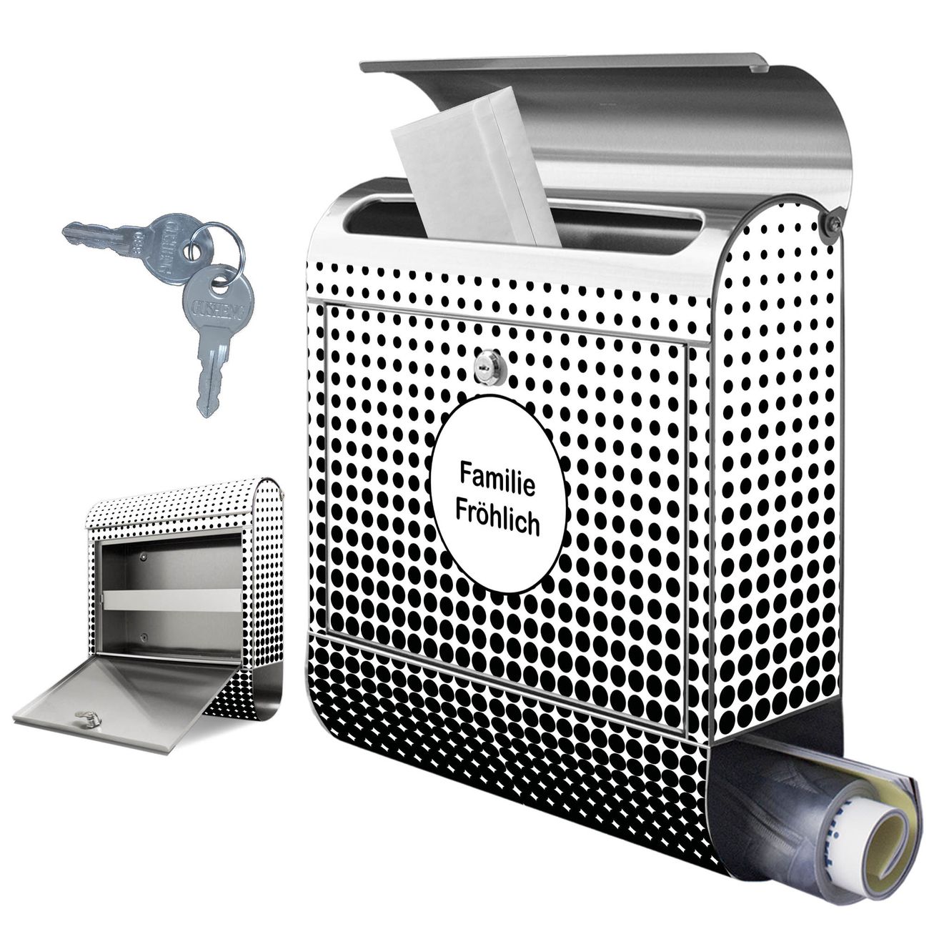 Wandbriefkasten Edelstahl Motiv Schwarz Weiß