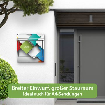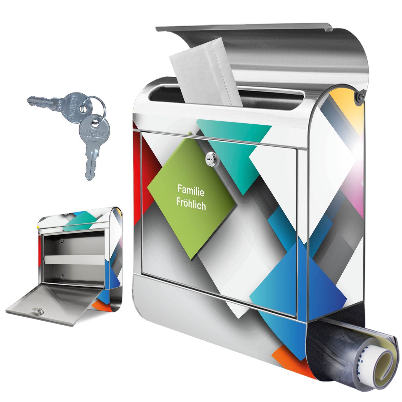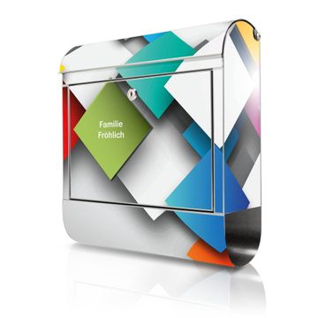 Wandbriefkasten Edelstahl Motiv Schwebende Quadrate