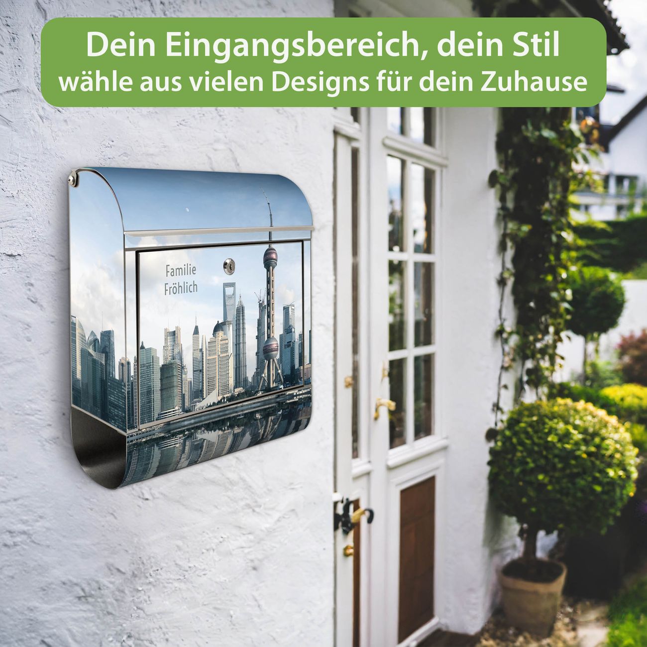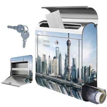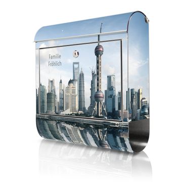 Wandbriefkasten Edelstahl Motiv Shanghai