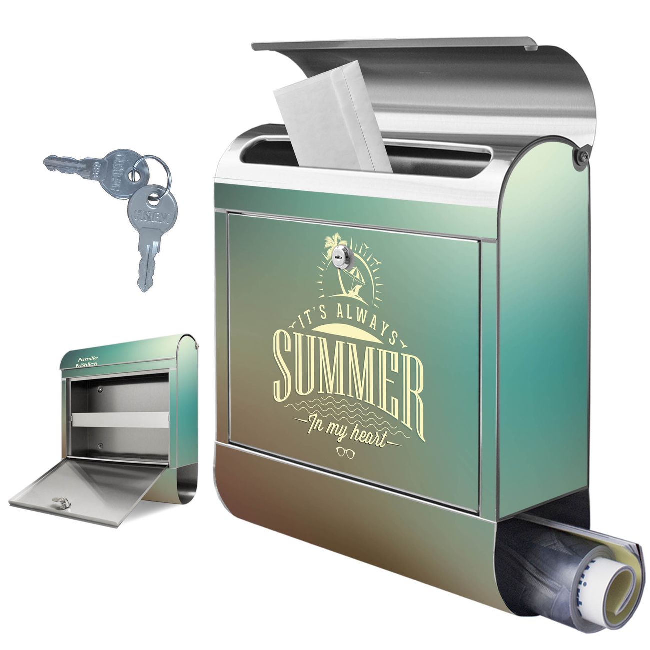 Wandbriefkasten Edelstahl Motiv Sommer Heart
