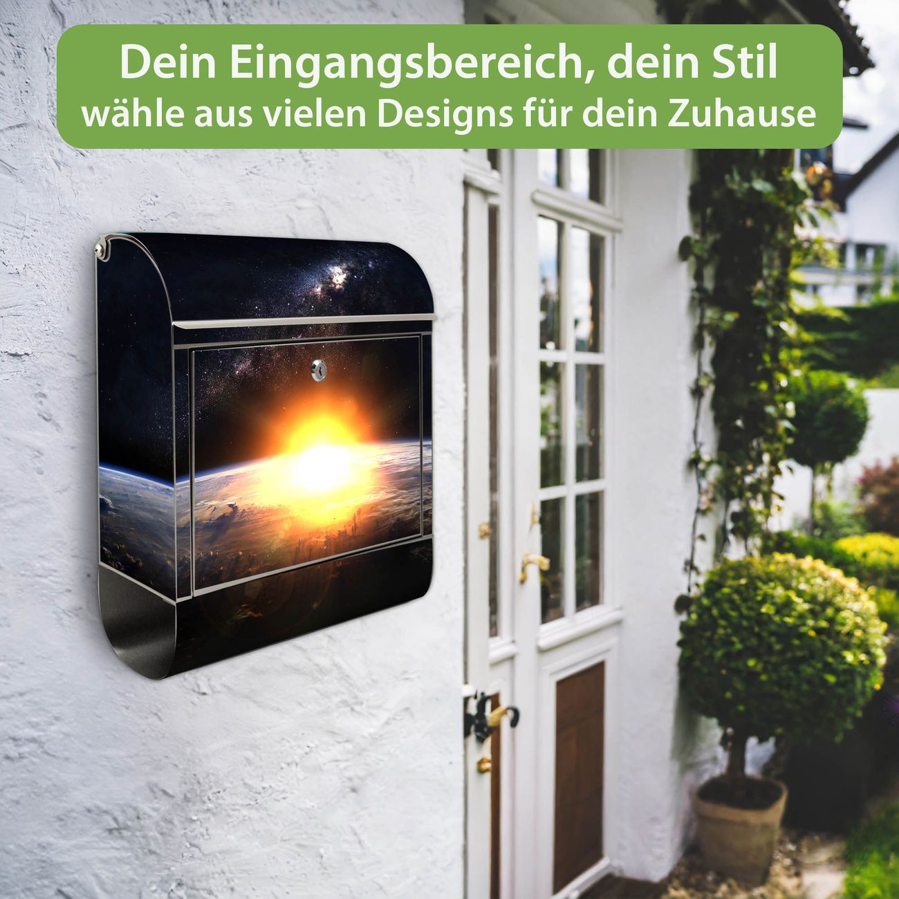 Wandbriefkasten Edelstahl Motiv Sonne im Weltall