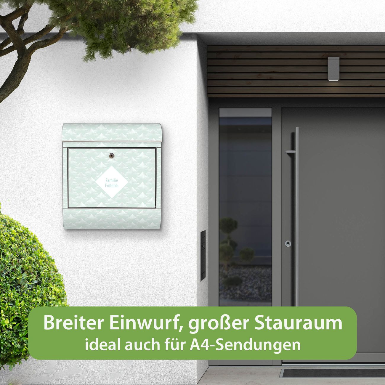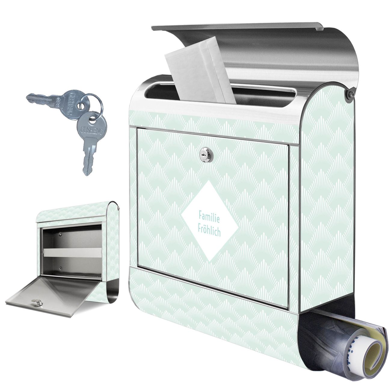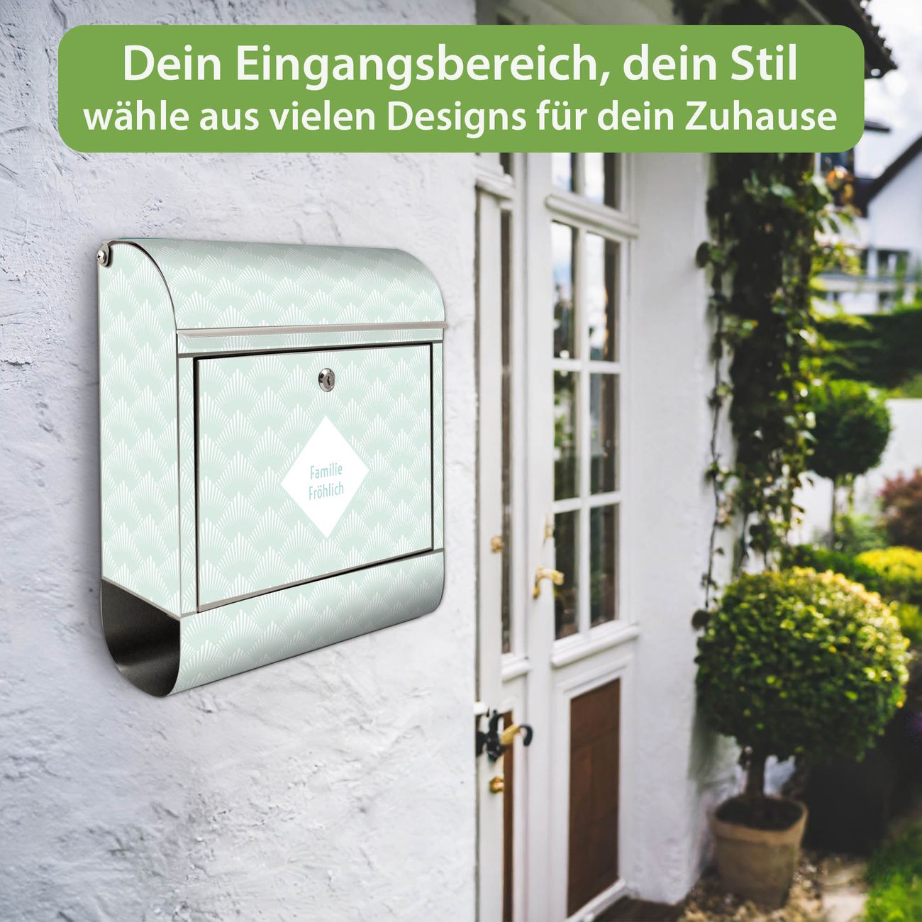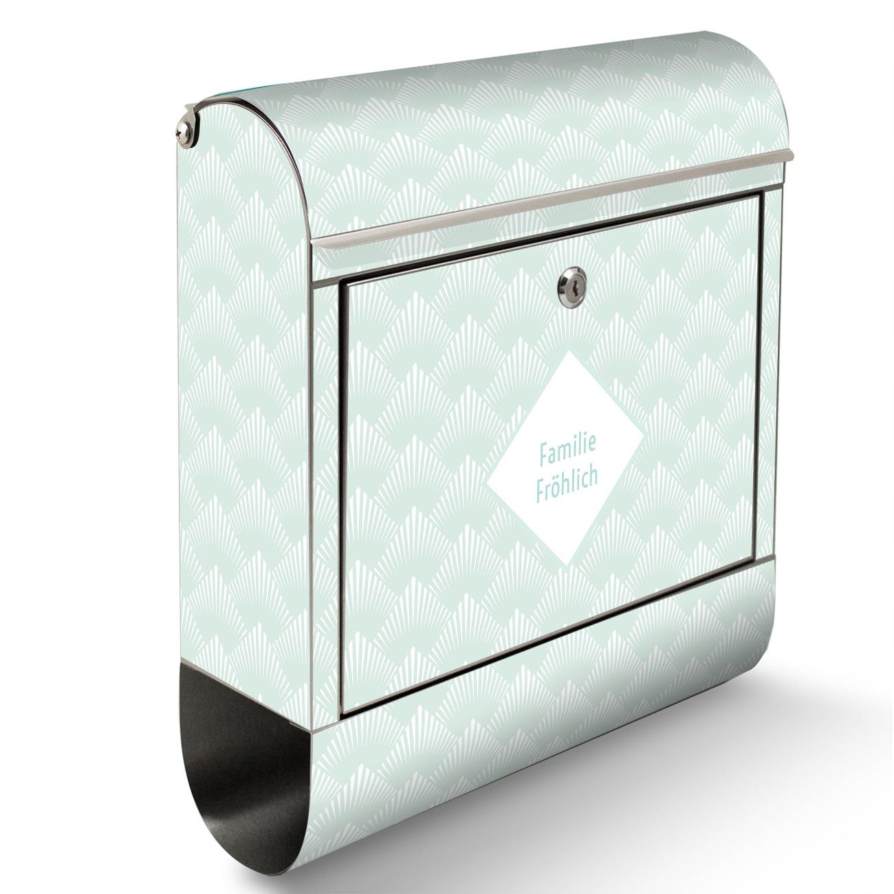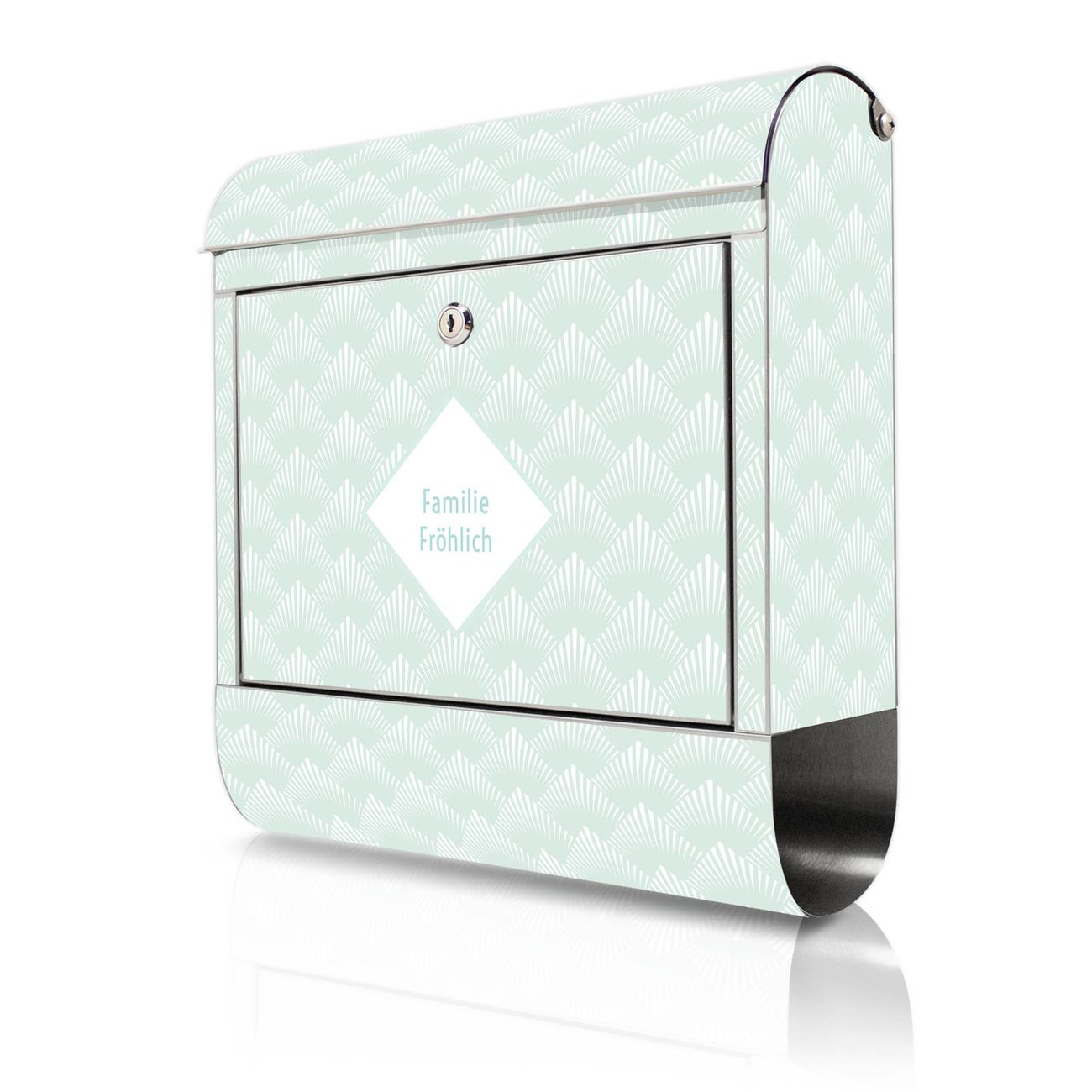 Wandbriefkasten Edelstahl Motiv Strahlen Mint
